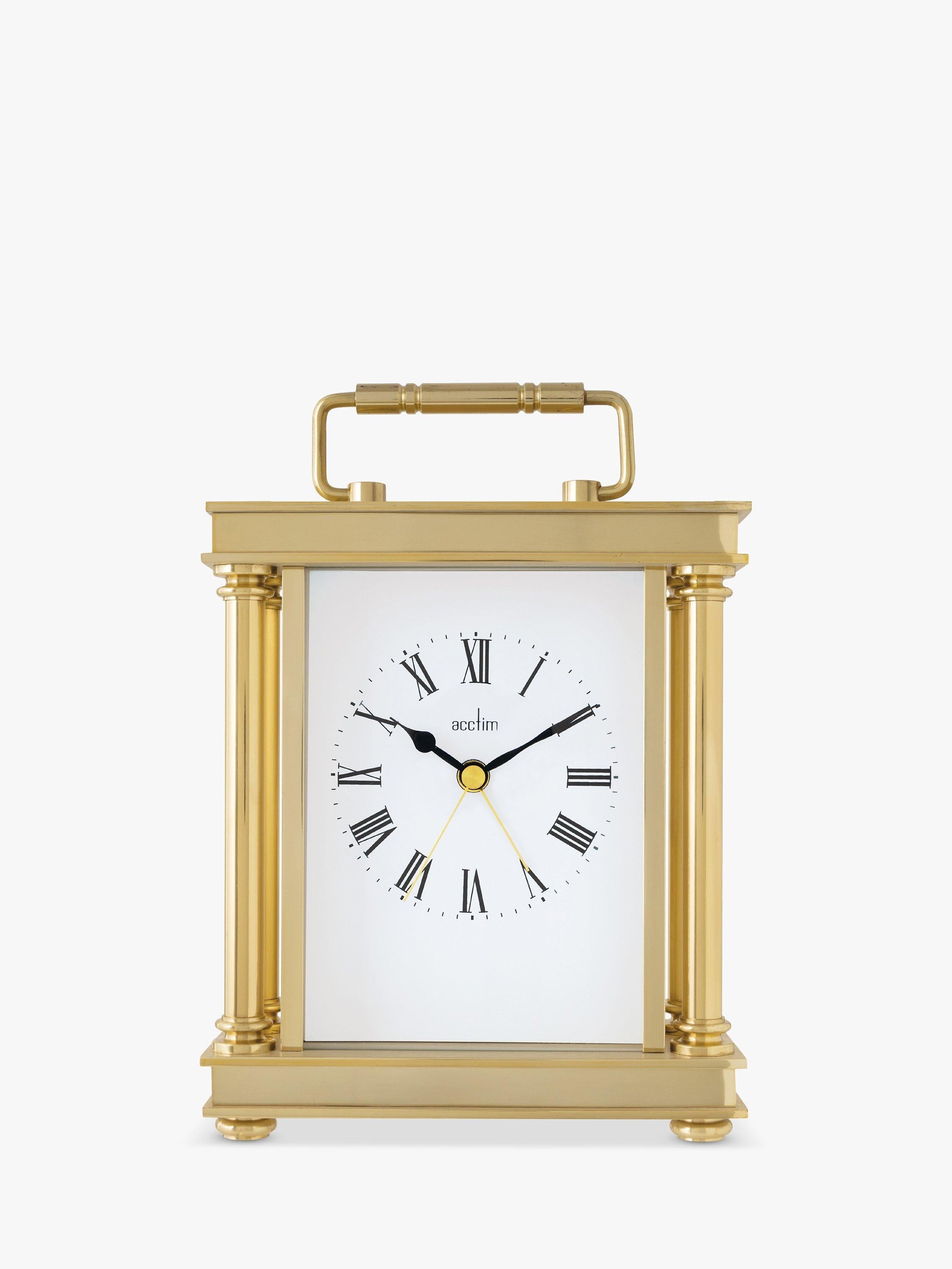 Acctim introduces the Marlow Analogue Alarm Carriage Clock, presented in a stunning polished gold finish that reflects classic Greek Revival influences beautifully. This timepiece features an uncluttered dial and simple metal case lines, ensuring visibility and refined style suitable for any room's décor. This functional unit provides dependable timekeeping alongside an integrated alarm system, perfect for primary bedrooms or studies.