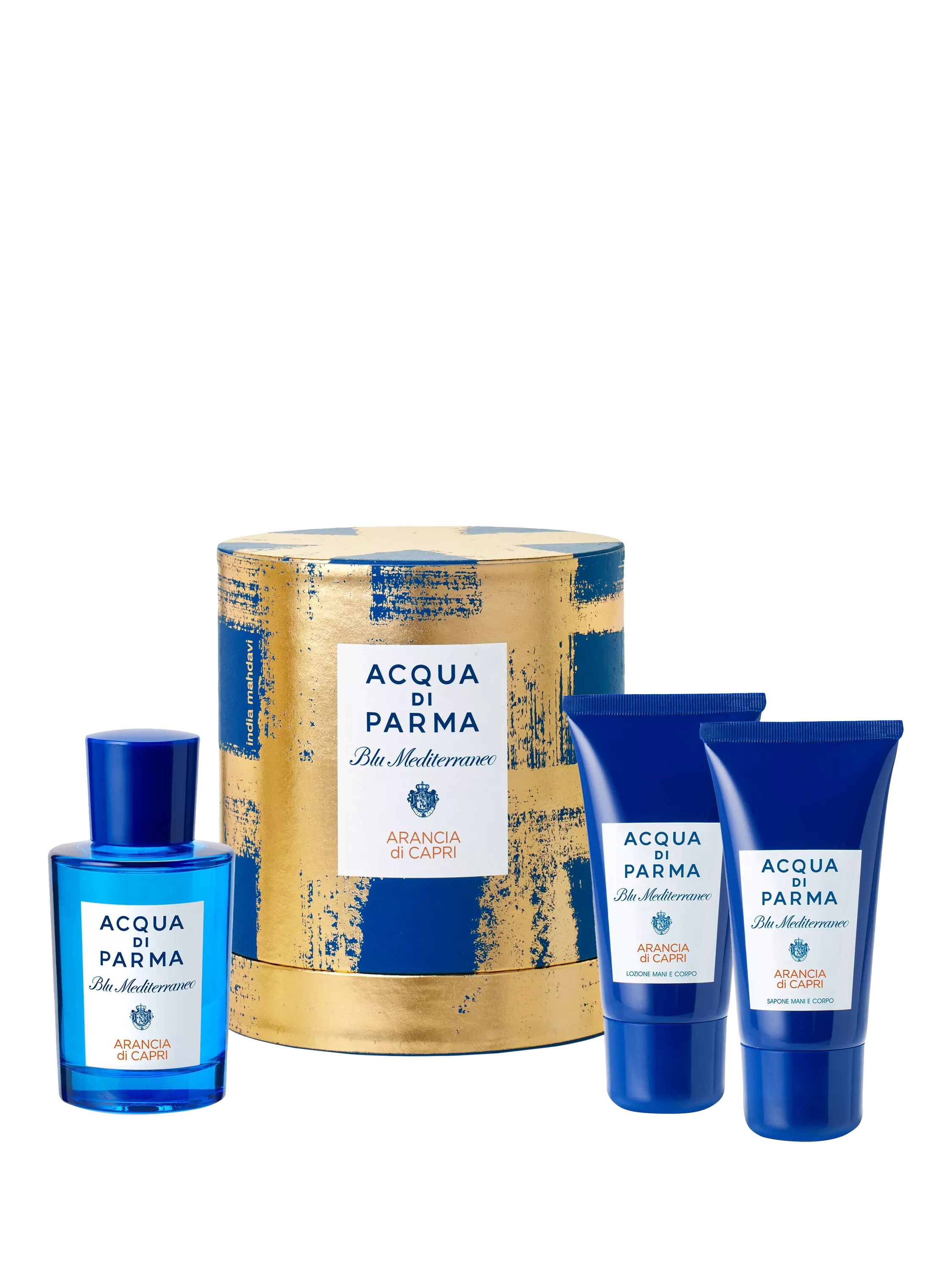 Enclosed in the Arancia di Capri Gift Set are a full-size Eau de Toilette, a Hand & Body Wash, and a Hand & Body Lotion, a lavish trio gift box to transport your senses to the island of Capri.