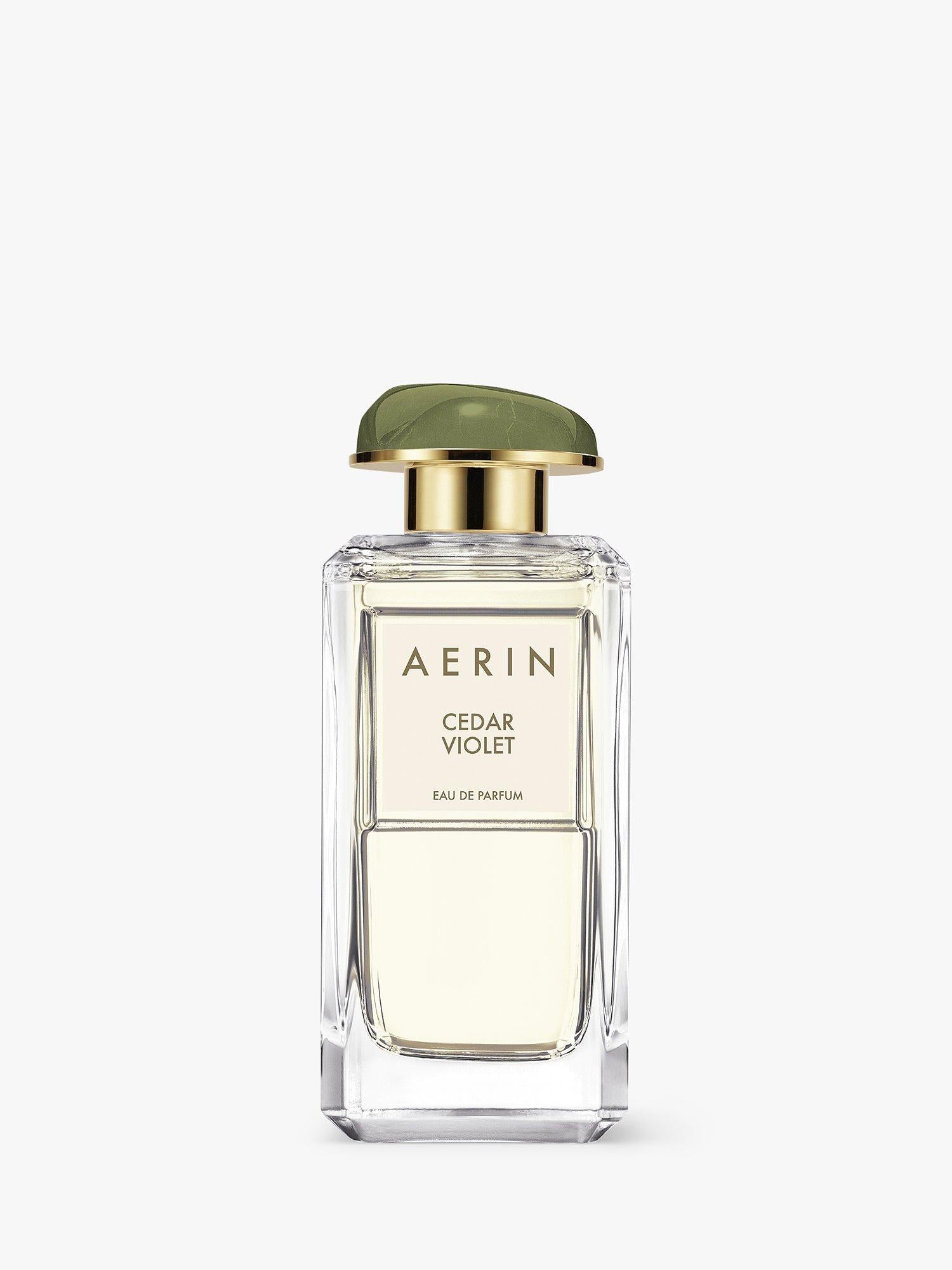 Aerin Cedar Violet Eau De Parfum beautifully captures the spirit of crisp, golden autumn days within a vast wilderness setting always. This bright, uplifting, floral woody fragrance transports you directly to the Adirondack Mountains landscape. It blends sparkling violet leaf notes with earthy Virginia cedarwood essence for invigorating sensory delight.