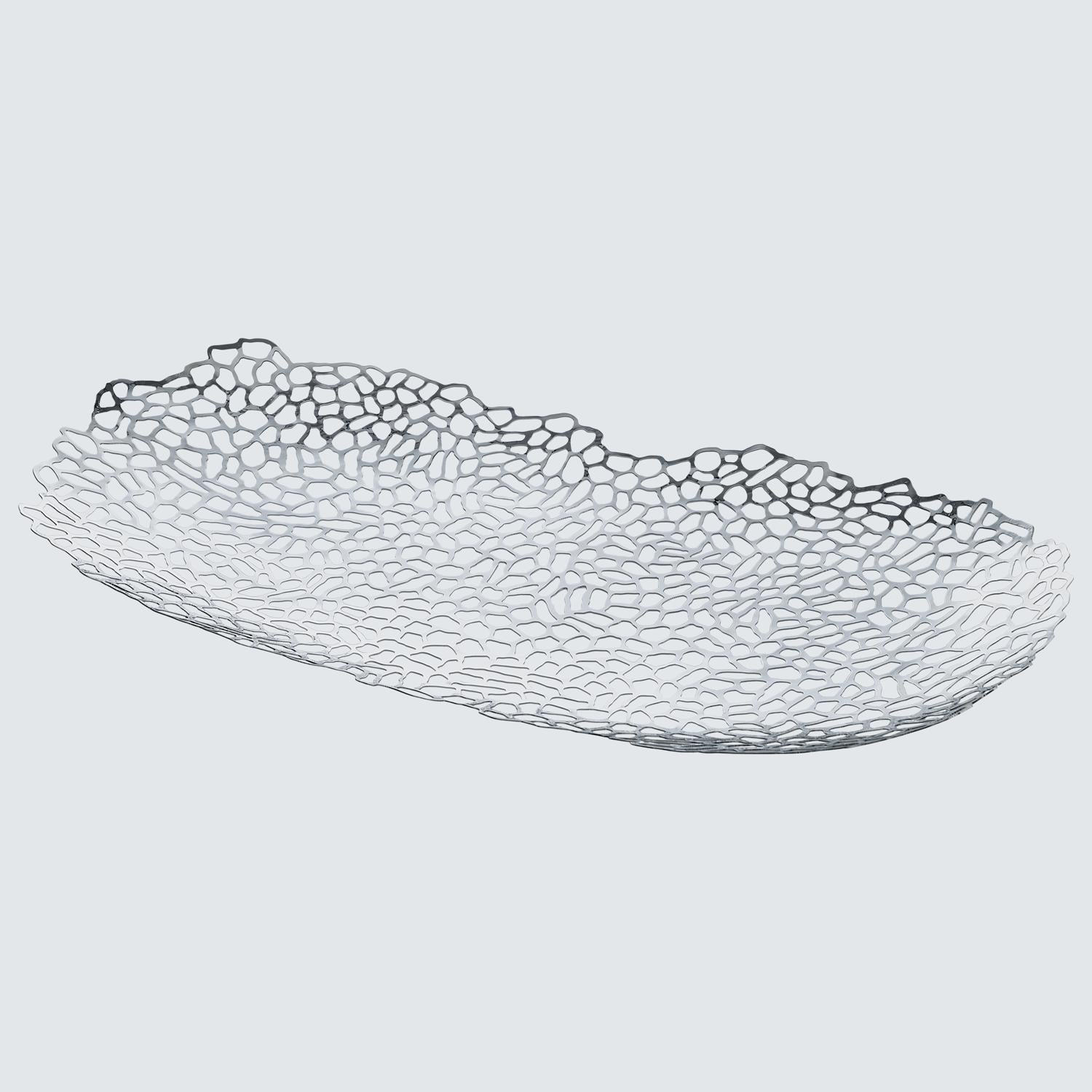 Alessi presents the Opus Ornamental Dish Centrepiece, crafted from mirror polished stainless steel featuring a unique laser cut, highly perforated design. This sophisticated decorative accessory, inspired by music, functions perfectly as an elegant fruit bowl or console embellishment. It brings Italian luxury style to any setting.