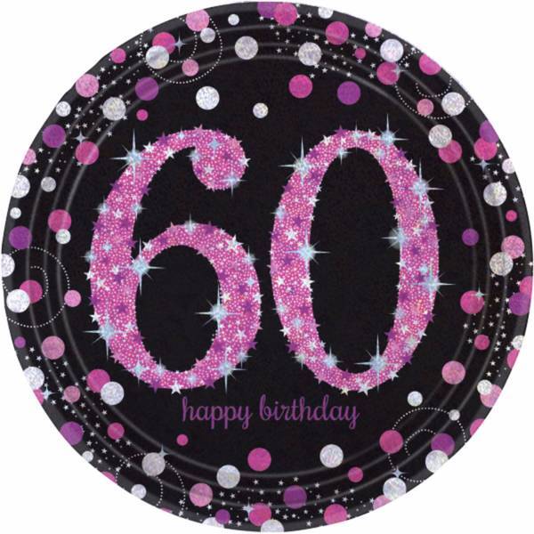 Amscan Sparkling Pink 60th Birthday Party Plates (Pack of 8)