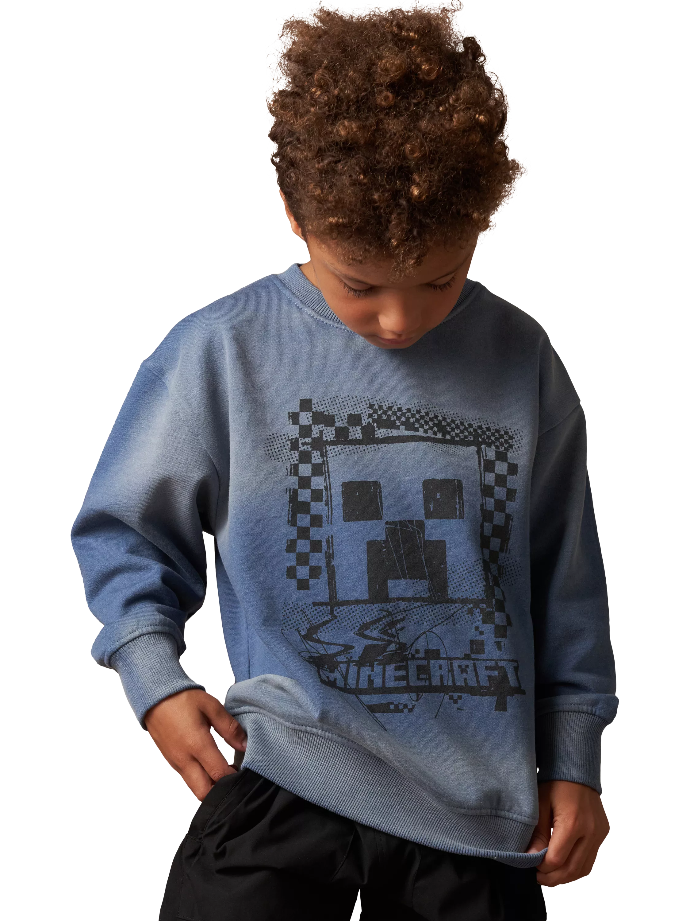 This super soft Minecraft branded sweatshirt is washed for authenticity, with out-of-this-world graphics on the front.