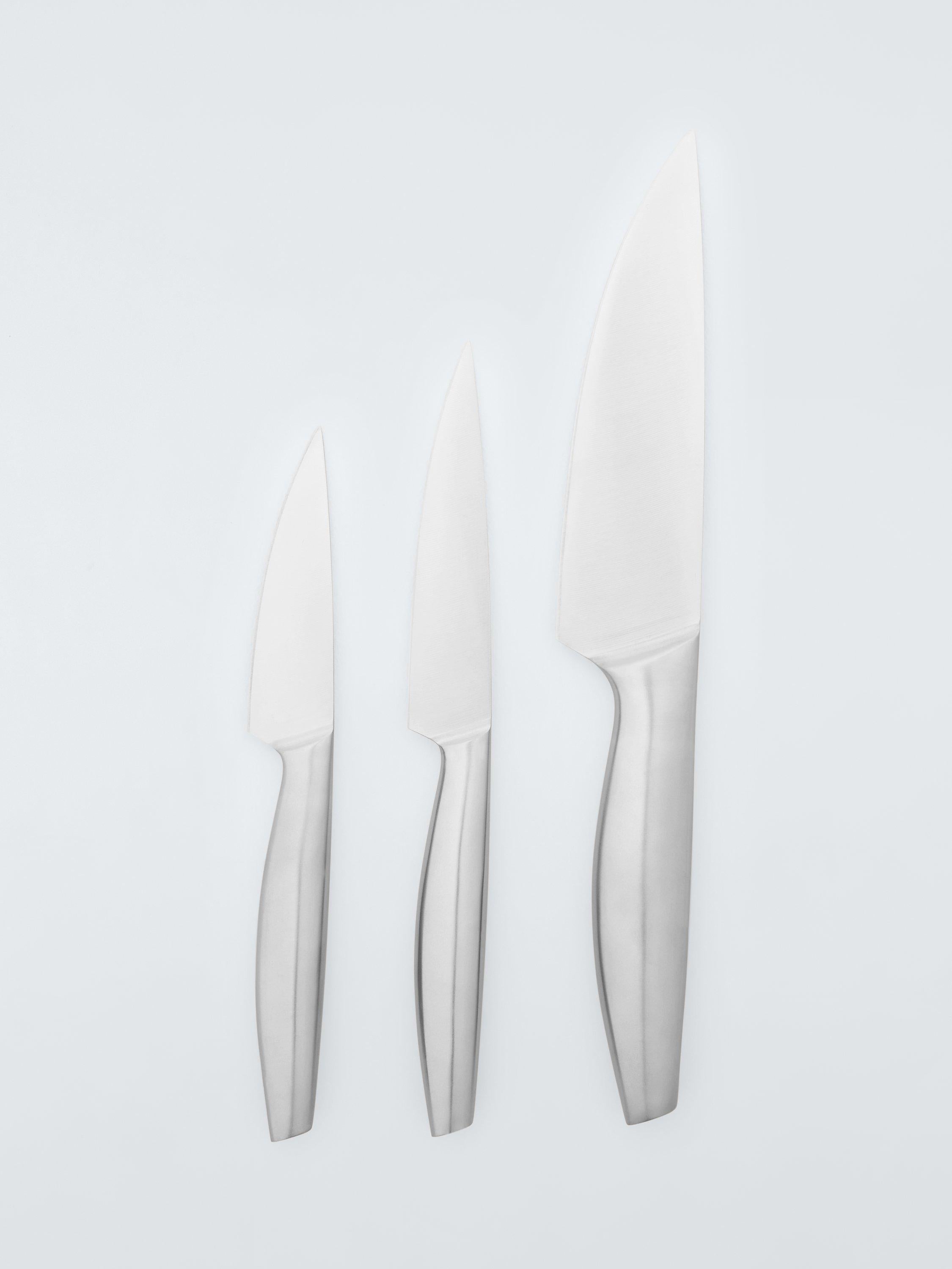 Read MoreVersatile knife set including a cook's knife, utility knife and a paring knife, covering most kitchen knife tasks. Use the cook's knife for tackling larger cuts of meat or fish. The utility knife is ideal for cutting and slicing smaller cuts as well as vegetables and the paring knife is suited for precision cutting fruit and vegetables.