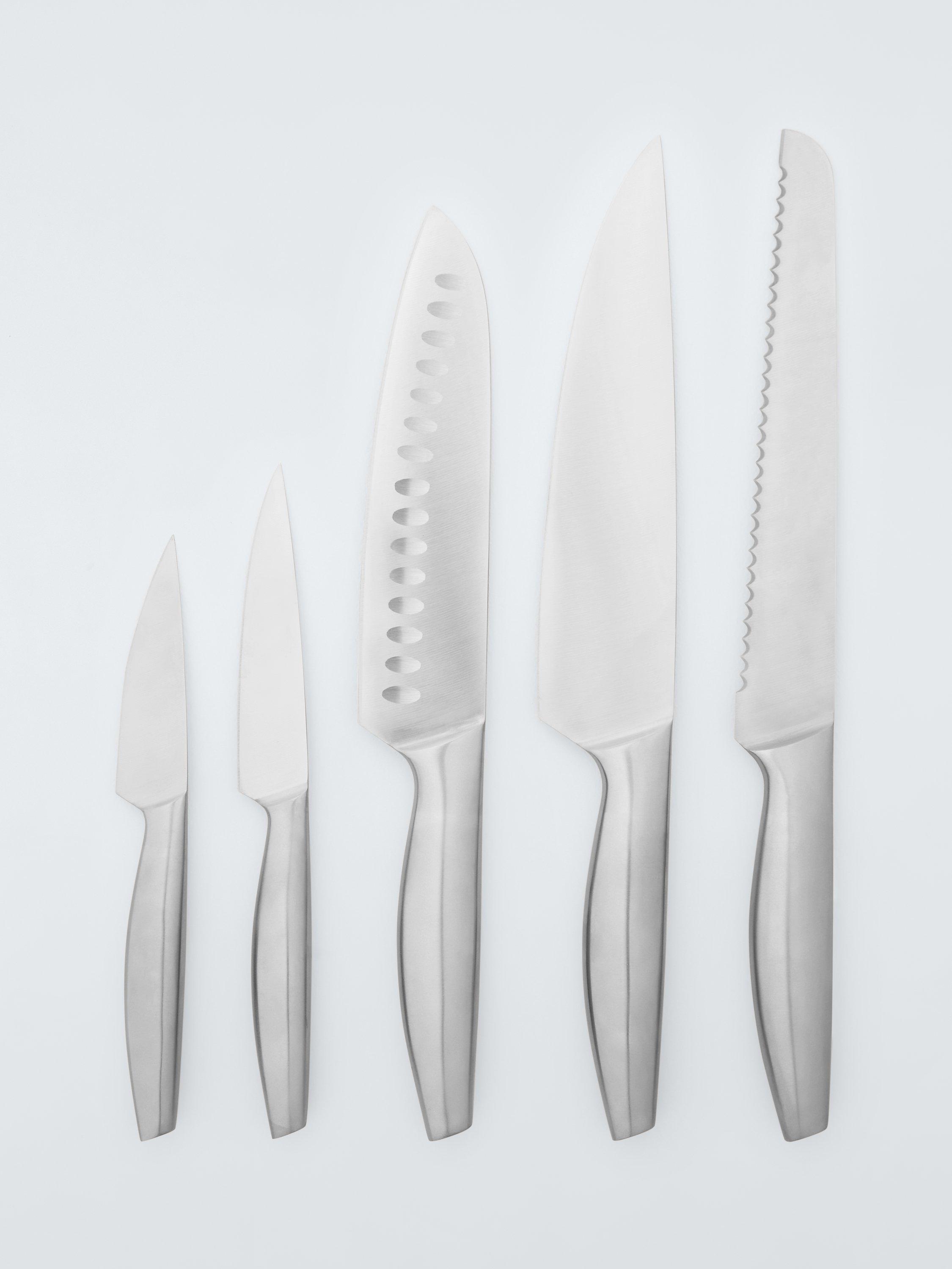Read MoreVersatile five-piece knife set including a cook's knife, bread knife, santoku knife, utility knife and a paring knife, covering most kitchen knife tasks.