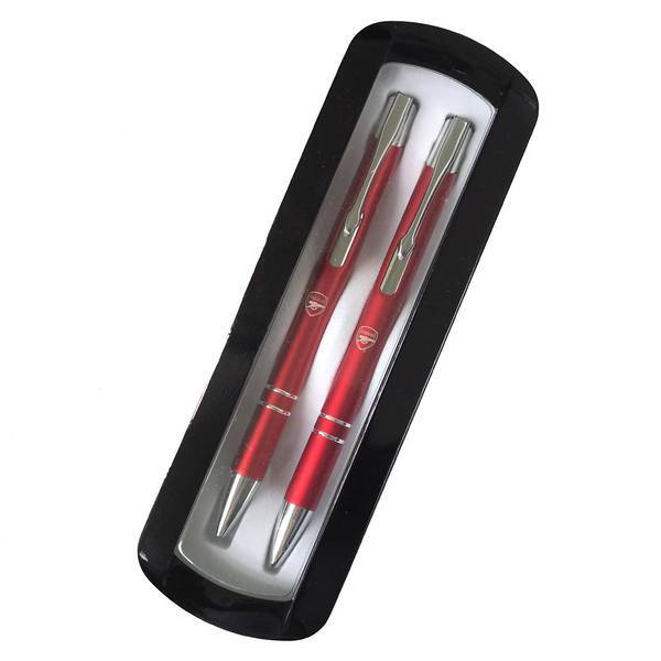 Arsenal FC Pen & Pencil Set is officially licensed merchandise suitable for fans and collectors. This set comes presented in a dedicated gift box, making it an ideal present or addition to your desk supplies. The retractable ballpoint pen ensures smooth, consistent writing with standard black ink. This practical set combines team pride with everyday utility for supporters.