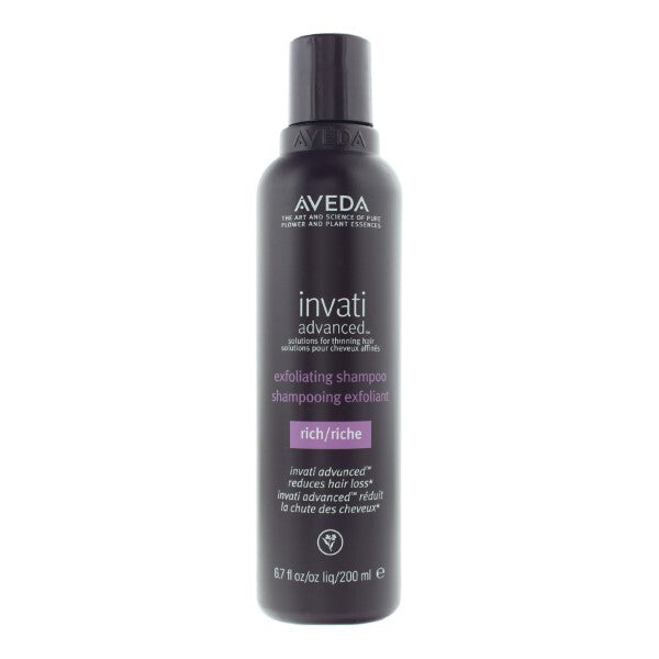 Aveda Invati Advanced Exfoliating Rich Shampoo can reduce hair fall by up to 77% due to breakage. The gentle and non-irritating formula creates a rich and creamy lather leaving your hair clean and nourished. Leaving your hair with the aroma of Lavender, Clary Sage, Vanilla and Australian Sandalwood. Your hair will be shiny and when used with the Invati ultra advanced conditioner it will also help to soften, smooth and thicken the look of your hair. Free from Sulfates, Silicones, Parabens, Mineral Oils & Synthetic Fragrances and Vegan Friendly.