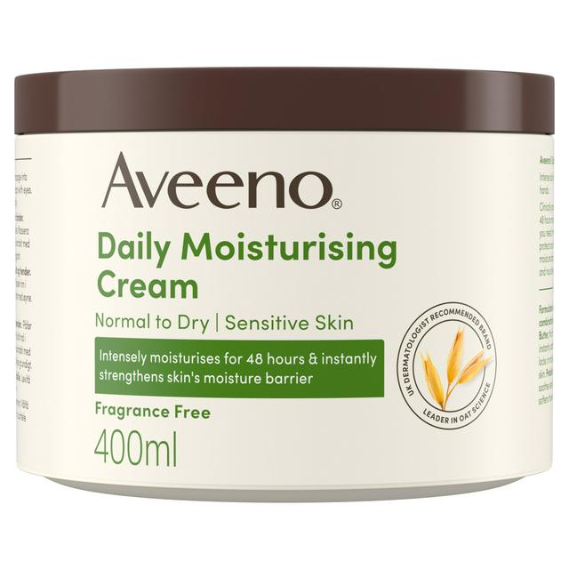 Aveeno Daily Moisturising Cream 400ml offers clinically proven, continuous 48-hour moisturisation specifically designed for normal, dry, and sensitive skin profiles. This rich, velvety cream instantly strengthens the vital skin moisture barrier when it is needed most by you. It ensures skin feels consistently soft, smooth, and thoroughly nourished all day long.