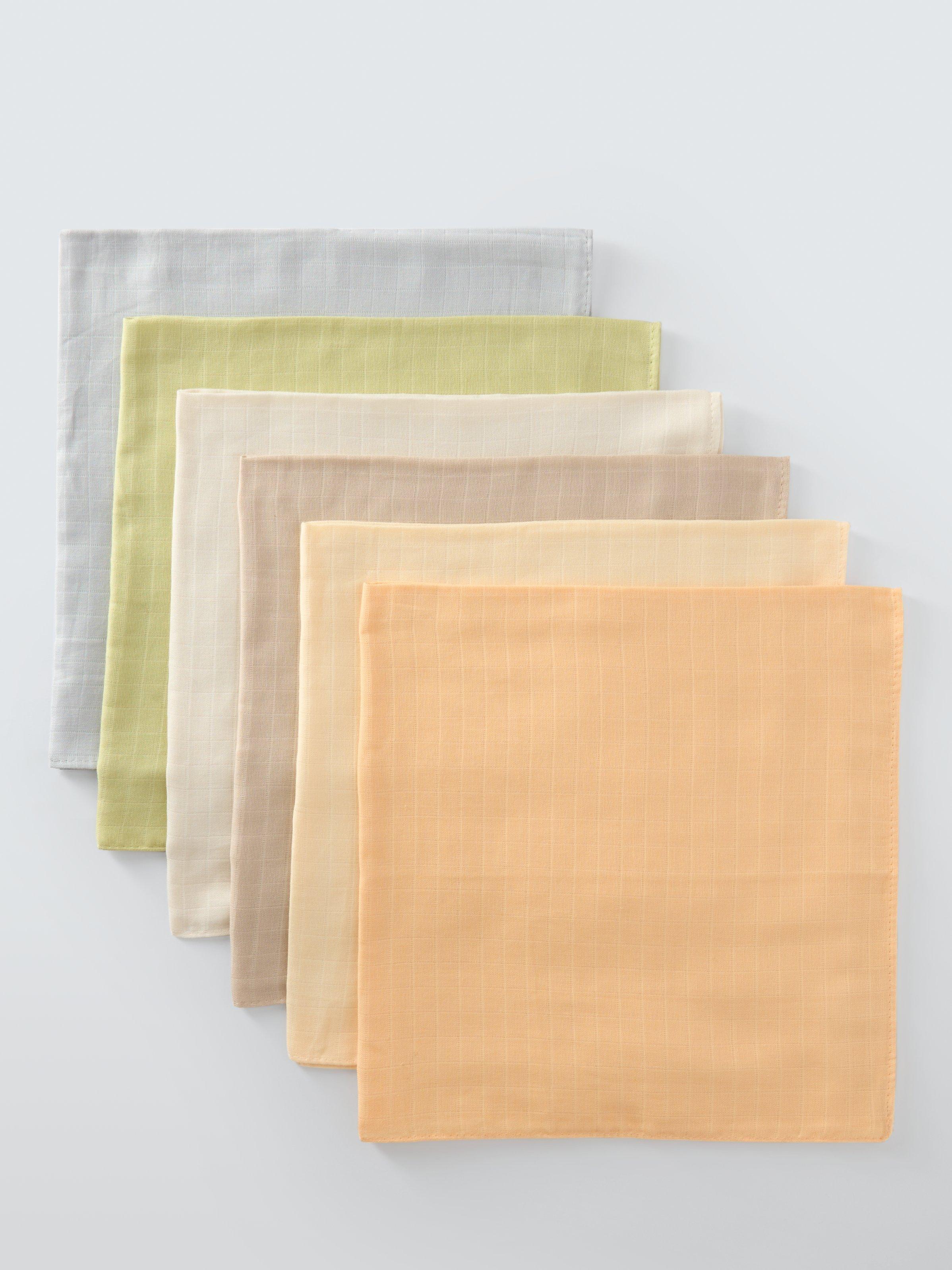 This John Lewis pack includes six colourblock muslin cloths, each measuring 70 x 70cm for versatile nursery application. Made from pure cotton, these essential cloths feel exceptionally soft and remain gentle for delicate baby skin during feeding or cleanup. They are a necessary and practical addition to any nursery collection.