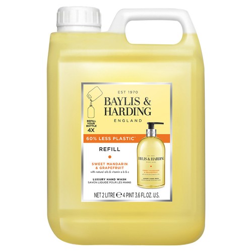 Enjoy our eco-friendly 2-litre Luxury Hand Wash Refill in the iconic Sweet Mandarin & Grapefruit fragrance. This format is specifically designed for convenience and long-term use. It is perfect for refilling your 500ml hand wash bottles up to four times.