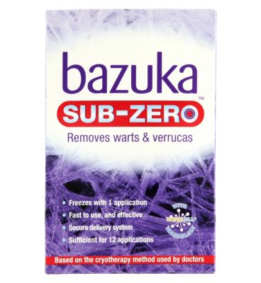 Read MoreBazuka Sub-Zero removes warts and verrucas. Bazuka Sub-Zero is a freezing wart and verruca removal device based on the cryotherapy method used by doctors.