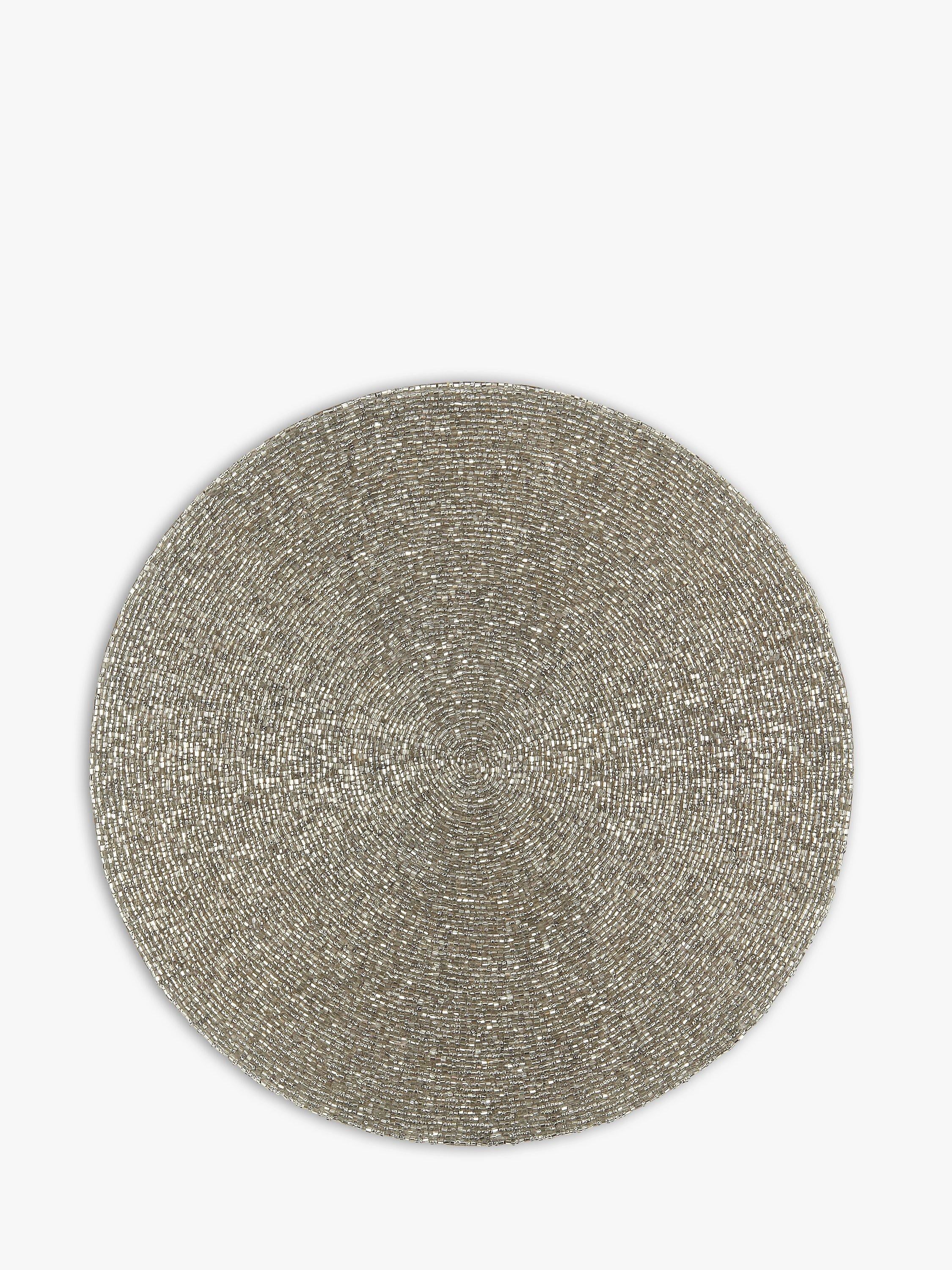 This John Lewis Beaded Round Placemat showcases handmade artistry for contemporary dining arrangements. Crafted with tactile glass beads coated in real silver, this piece delivers lasting shine. It provides excellent protection for your tableware. Perfect for formal entertaining.
