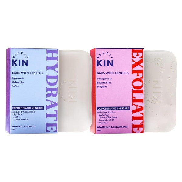 Product Information enjoy smooth kin with fullsized beauty kin exfoliate and hydrate bars plus a free kin pouch