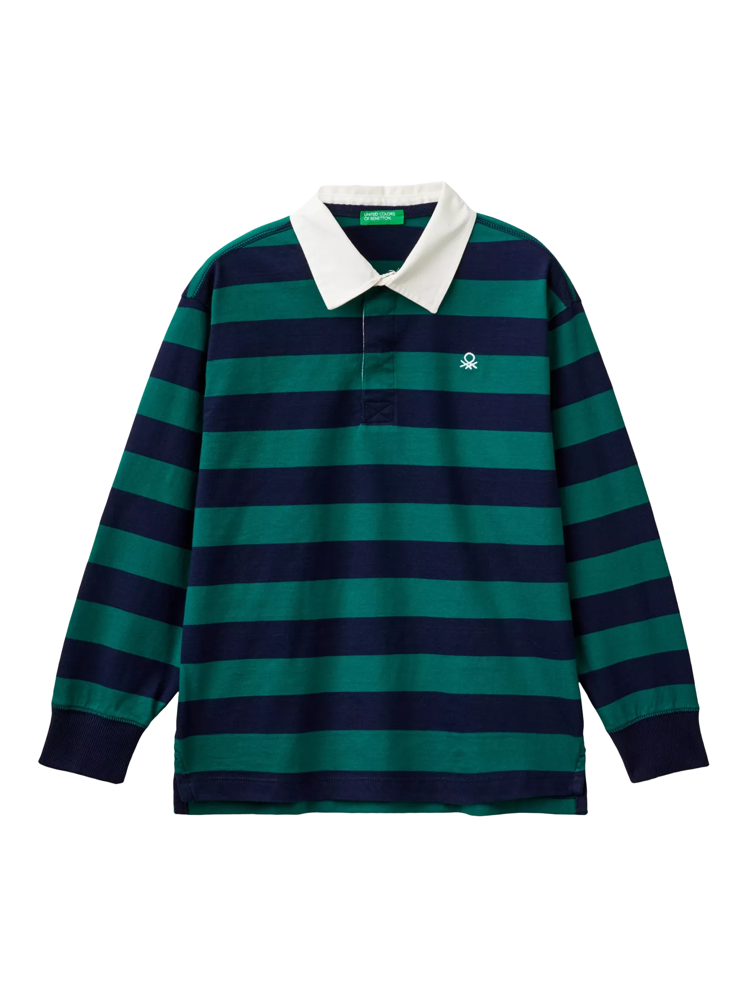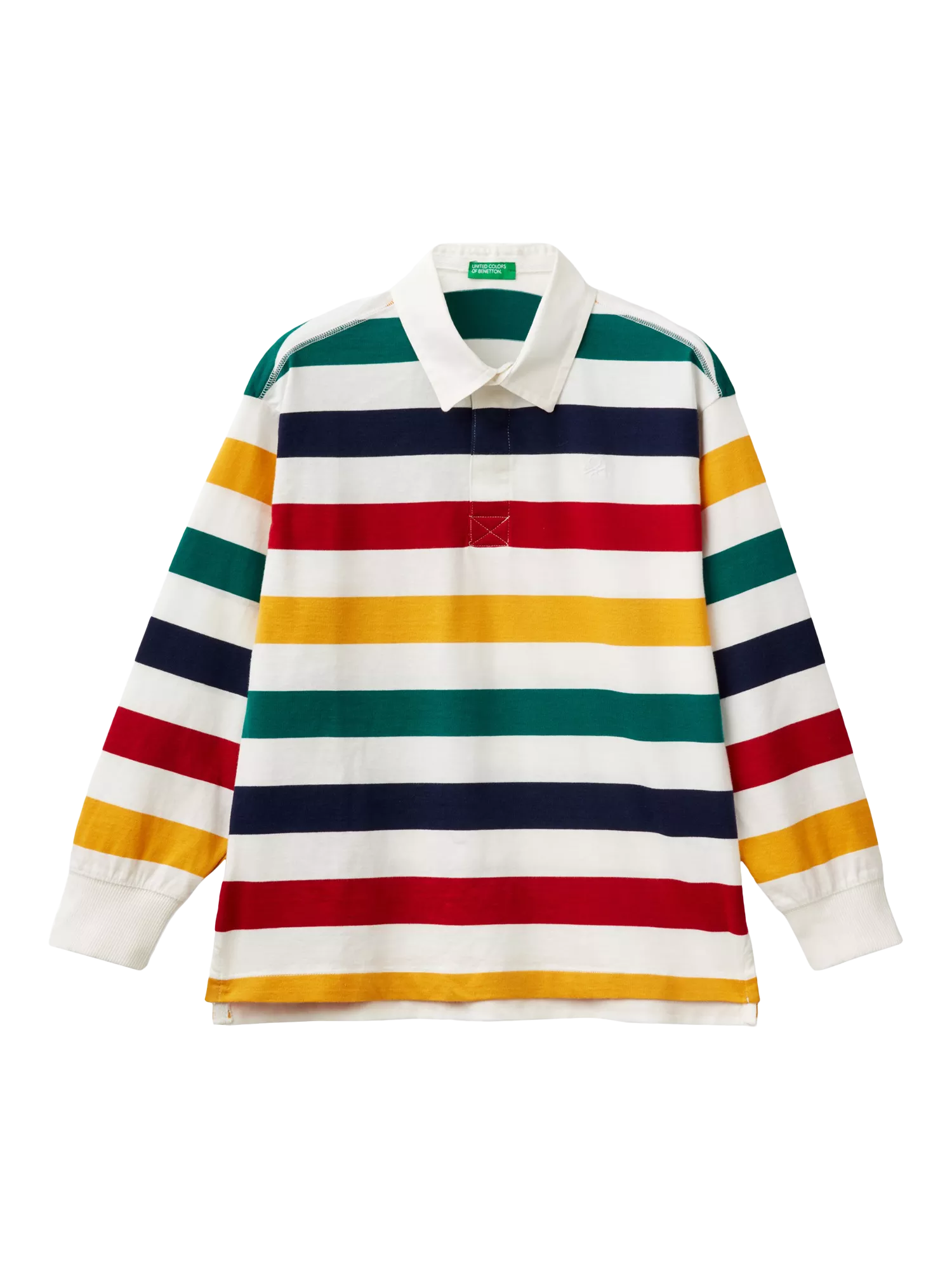 With classic stripes throughout, this long sleeve rugby shirt by Benetton features a twill collar and is made from pure cotton for soft, breathable wear.