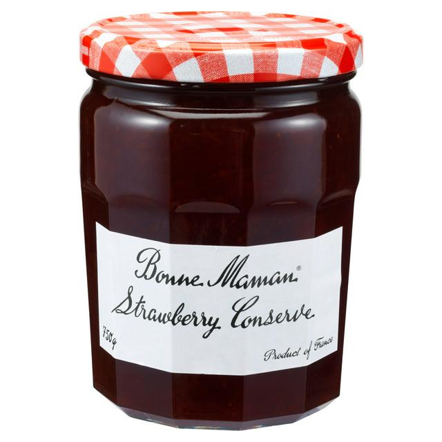 Bonne Maman Strawberry Conserve 750g offers truly traditional quality from France for your kitchen. This large jar contains a rich, gluten-free preserve featuring a distinctive, fruitful strawberry flavour. It is made simply, suitable for vegetarians, and perfect for spreading generously. This conserve is ideal for elevating morning toast.