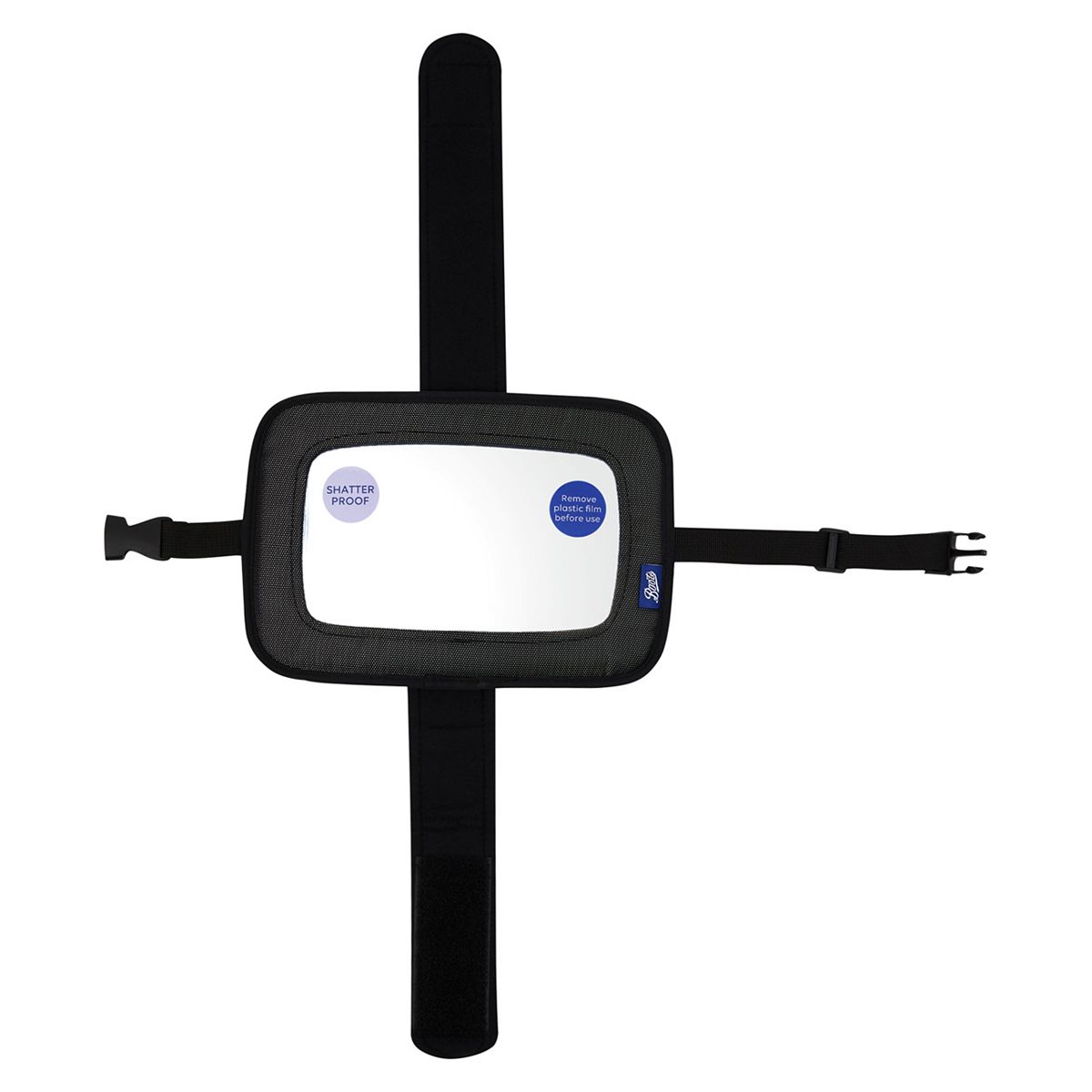 Our easy to fit boots mega mirror allows you to keep an eye on your little one whilst travelling together. This handy mirror allows you to arrange the correct viewpoint in order to see your child whilst driving.Perfect for use with rear-facing car seats, it's easy to install, just strap the mirror to the headrest of a rear seat. For best use, attach the mirror to the head rest of the seat your child is facing, ensuring it is pointing in your child's direction.
