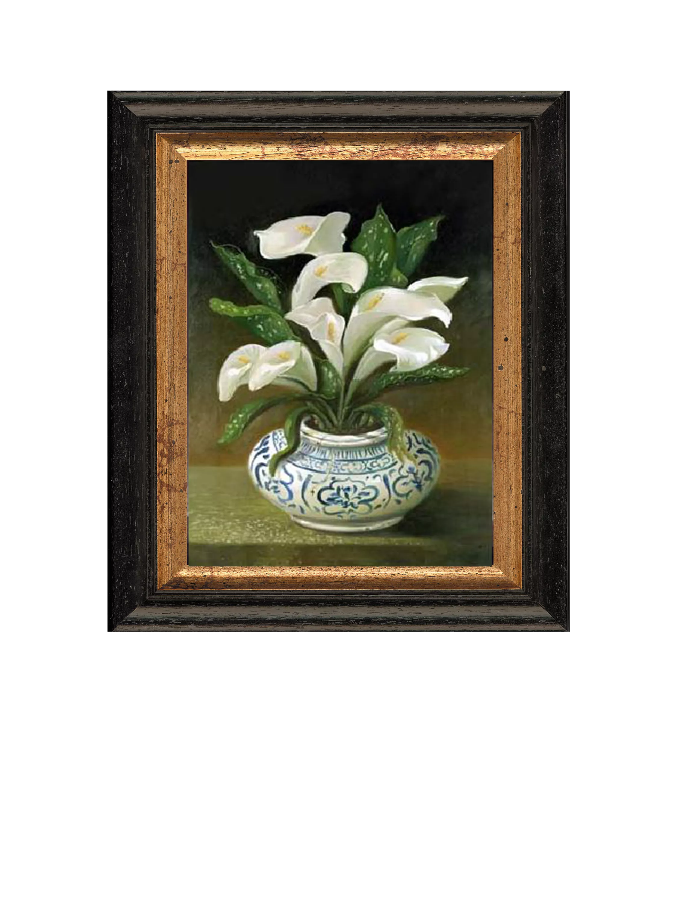 'White Flowers in Vase'. With the use of both up-to-date technology and skilled craftsmen, this unique and high-quality picture captures all the colour, craquelure, texture and character of an original painting. Each oleograph is a masterpiece in its own right and carefully hand-finished to recreate that timeless look and appeal of an original.