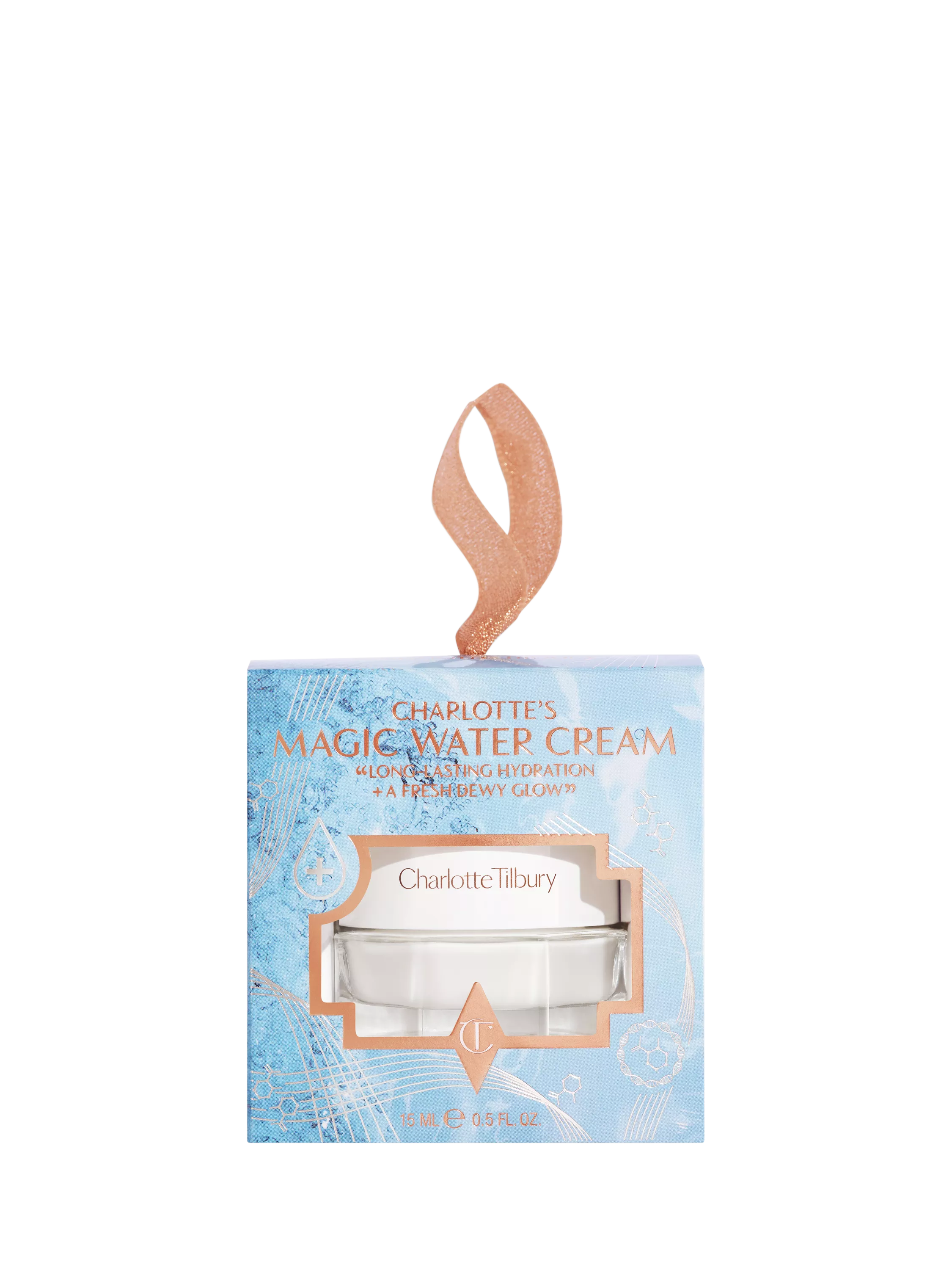 Discover Charlotte Tilbury's Magic Water Cream Mini Bauble, a luxurious treat for your skin and a perfect gift. This lightweight gel-cream delivers instant hydration and a radiant, dewy complexion, leaving skin feeling plump and balanced. It's the perfect addition to your skincare routine, offering a touch of British luxury.