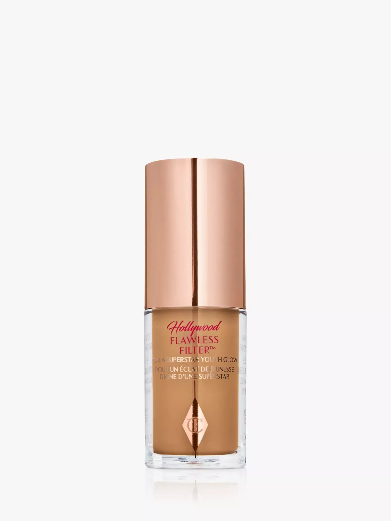"My mini Hollywood Flawless Filter is available in 4 shades, and 3 Fair is a warm peach shade that’s perfect for light to medium skin tones." Charlotte Tilbury.