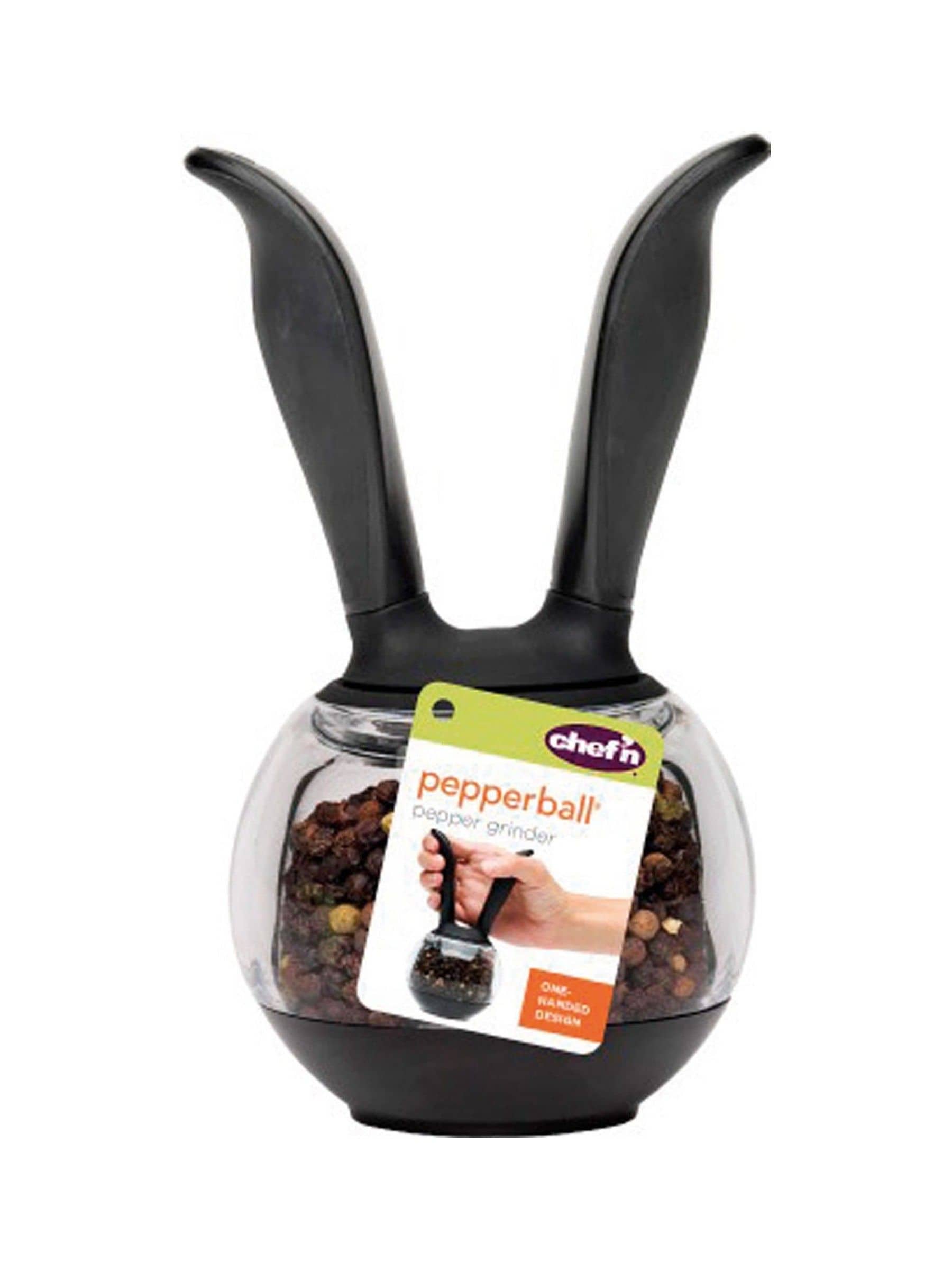 The PepperBall is designed to be used one-handed, for easy seasoning at the table or stove. Simply choose your desired coarseness using the slider on the base, then give the handles a squeeze to season.