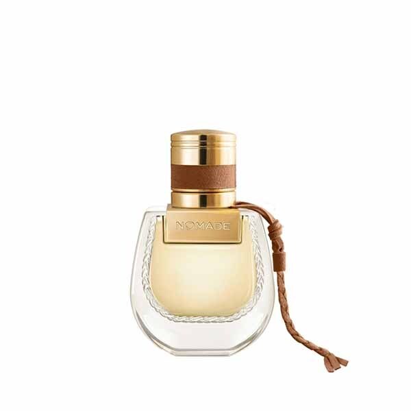 the bottle the emblematic nomade bottle is reinvented in shades inspired by nature a brown braid is tied around the neck of the bottle representing the ties that we create through our travels this symbolic motif is also engraved into the glass of the chlo nomade fragrance bottle