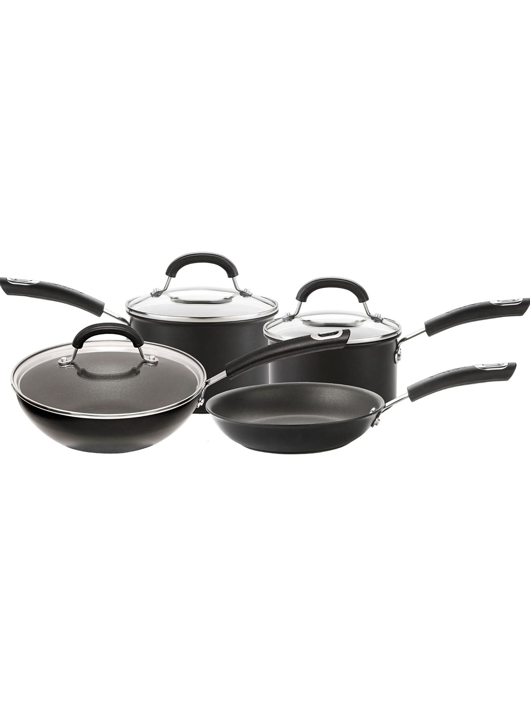 The Total Induction Saucepan, Stir Fry & Skillet Starter Set - 4 Piece includes: 16cm & 18cm Saucepans & Lids, 22cm Skillet Frying Pan, 24cm Stir Fry Pan & Lid. From traditional Sunday roasts to international cuisine and hearty meals, our Circulon Total Non-Stick Induction Saucepans & Lids, Stir Fry & Skillet Starter Kit - 4 Pieces offers you the performance and versatility you need to get started cooking in the kitchen. Including Non-Stick and Induction Hob technology, this is the perfect Starter Set for any new kitchen or stovetop. Twice as tough as traditional Stainless Steel, our 4 Piece Total Anodized Cookware Set offers durability, as well as quick and even heating, perfect for trying new recipes. With comfortable, heat resistant handles, toughened glass Saucepan Lids, and our metal utensil safe design, the Circulon Total Start Set will make cooking all the more pleasurable. Thanks to our lifetime guarantee, your new Circulon Cookware set will always be on hand as you explore culinary delights.