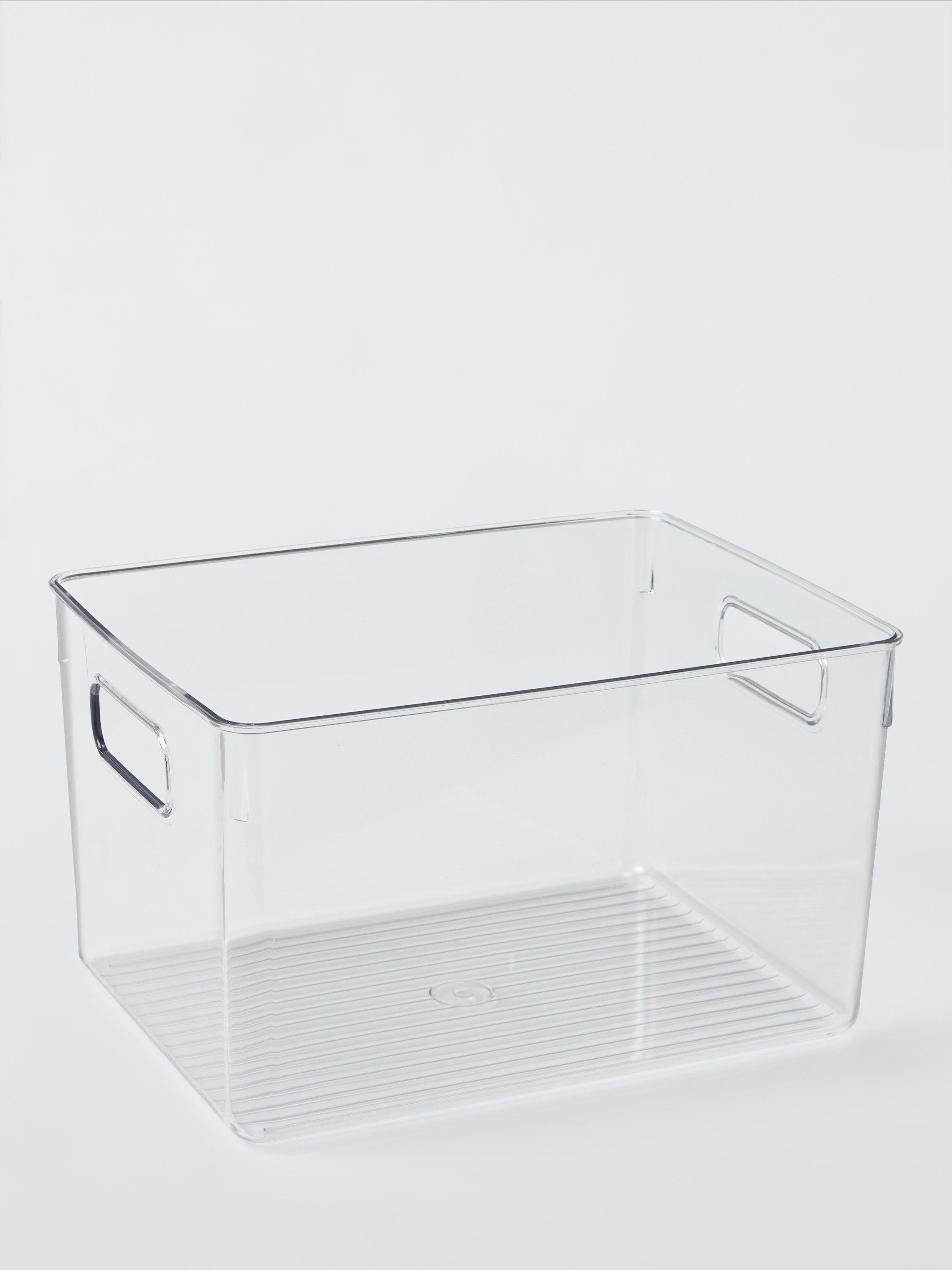 John Lewis presents this Medium Clear Plastic Storage Box, expertly designed for maintaining optimal home tidiness across every room in your dwelling. Its durable construction features robust handles, allowing for simple, secure carrying of stored contents. The perfectly clear plastic ensures all items remain easily visible for quick identification daily.