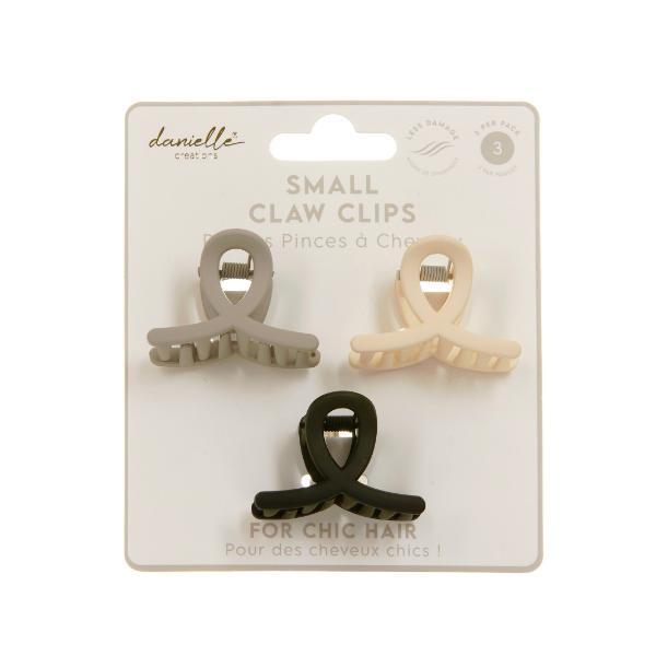 Set of 3 mini claw clips Includes cream, grey, and black clips Neutral colours for easy styling Strong grip without tugging Compact and ideal for travel Keep your hairstyle neat and stylish with this 3-pack of Danielle Creations Mini Claw Clips. Featuring one cream, one grey, and one black clip, this versatile set is perfect for everyday hair styling. Whether you’re pinning back small sections or taming loose strands, these compact clips offer a secure hold without snagging. Their neutral tones work with any outfit, and their small size makes them ideal for handbags or travel.