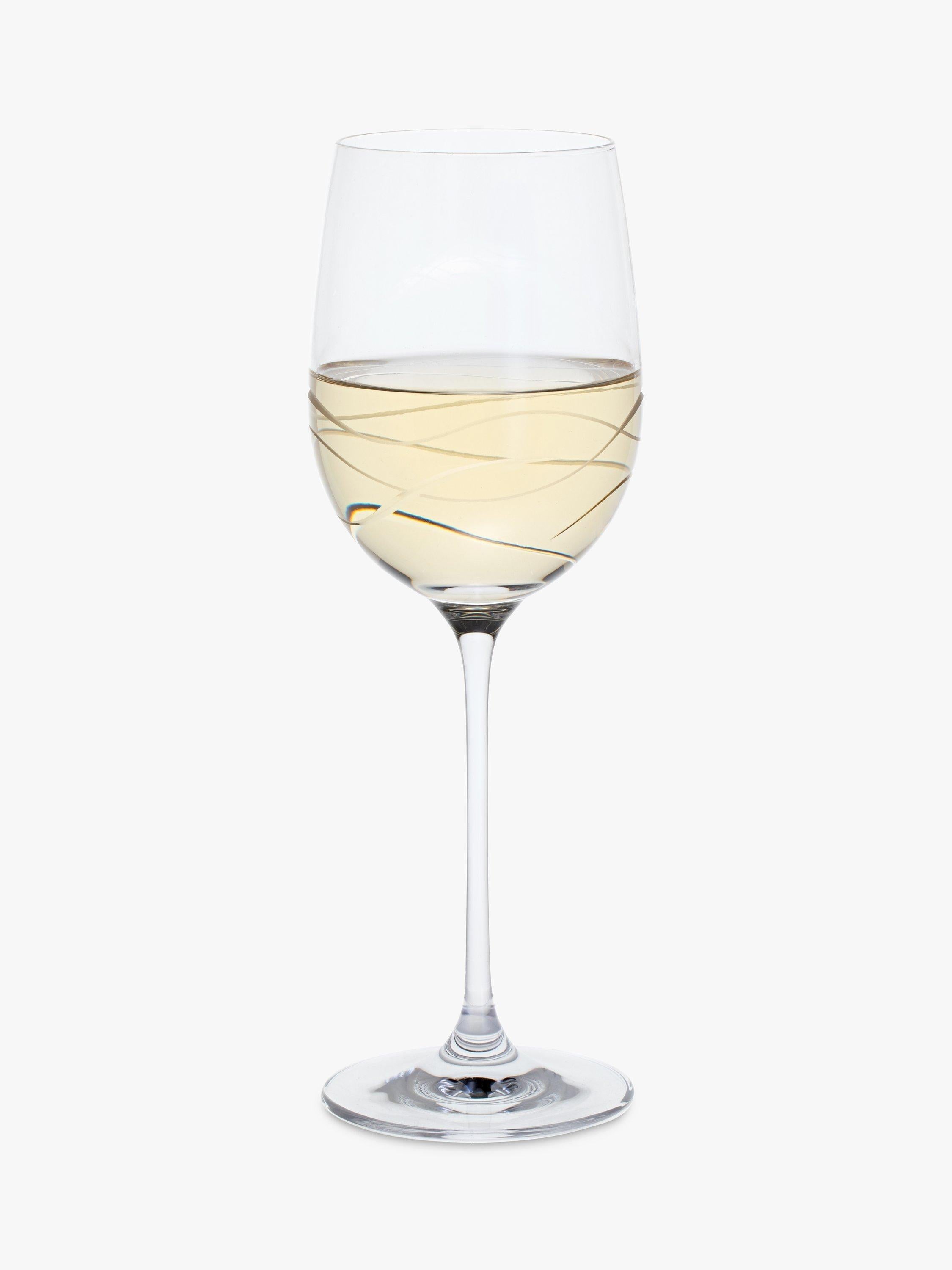 A simple swirling cut design wraps around this pair of contemporary wine glasses from Dartington's Twilight range. Made from lead-free crystal glass with elegant stems, they bring an eye-catching element to your glassware.