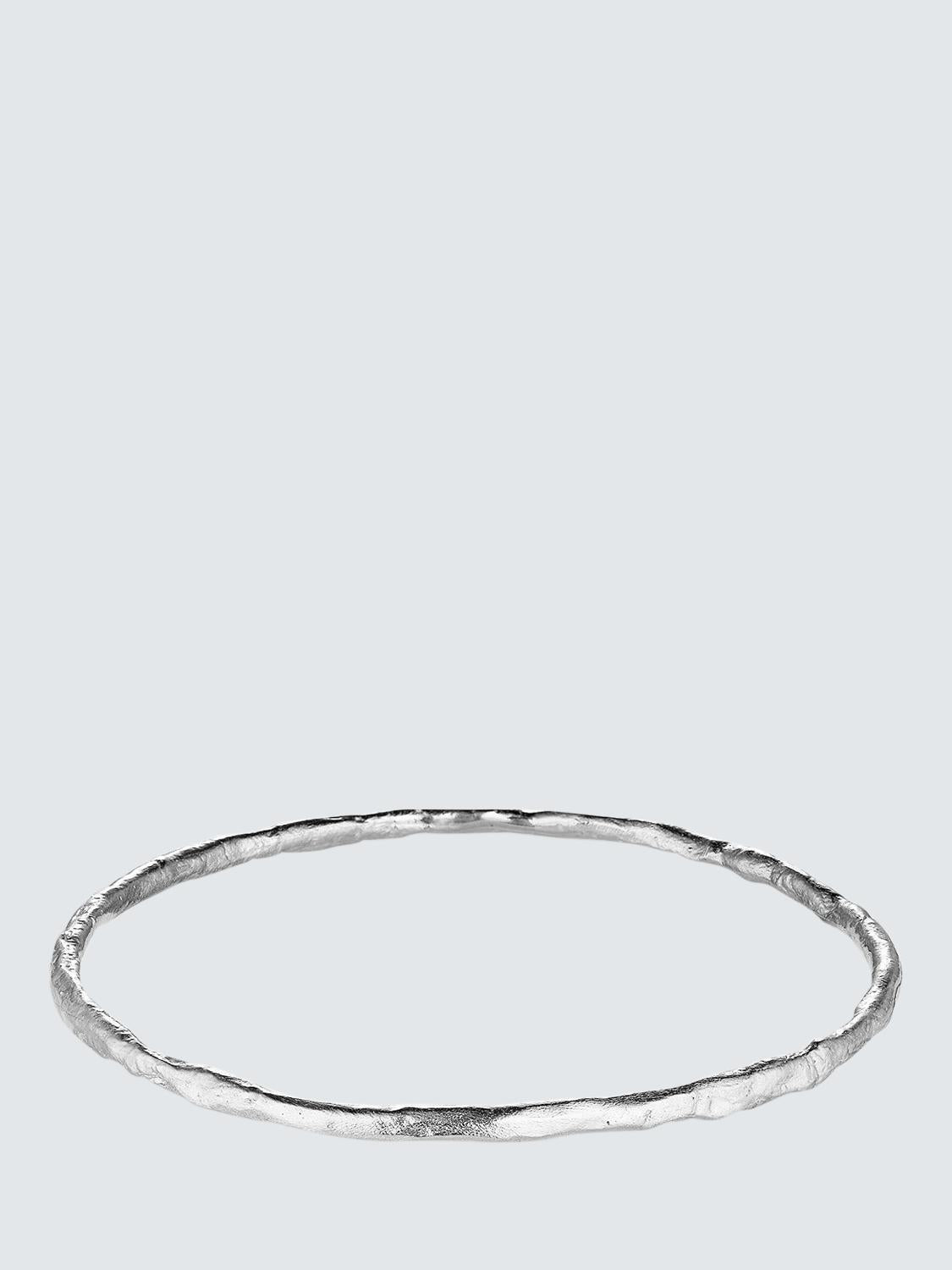 The Deborah Blyth Delphi Bangle presents a slimline silhouette crafted in fine silver. Handcrafted using traditional lost wax casting methods, this accessory features distinct textured detailing throughout its entire design. It serves as a refined statement piece suitable for enhancing any ensemble.