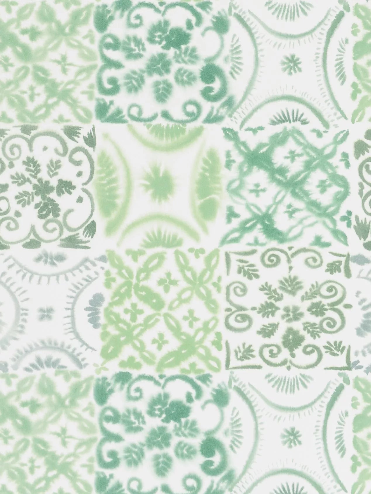 A decorative wallpaper taking inspiration from vintage ceramic wall tiles, painted in inky blurred tones of watercolour. Printed onto a soft non-woven ground for ease of hanging. In colourful as well as neutral tones for all interior settings.