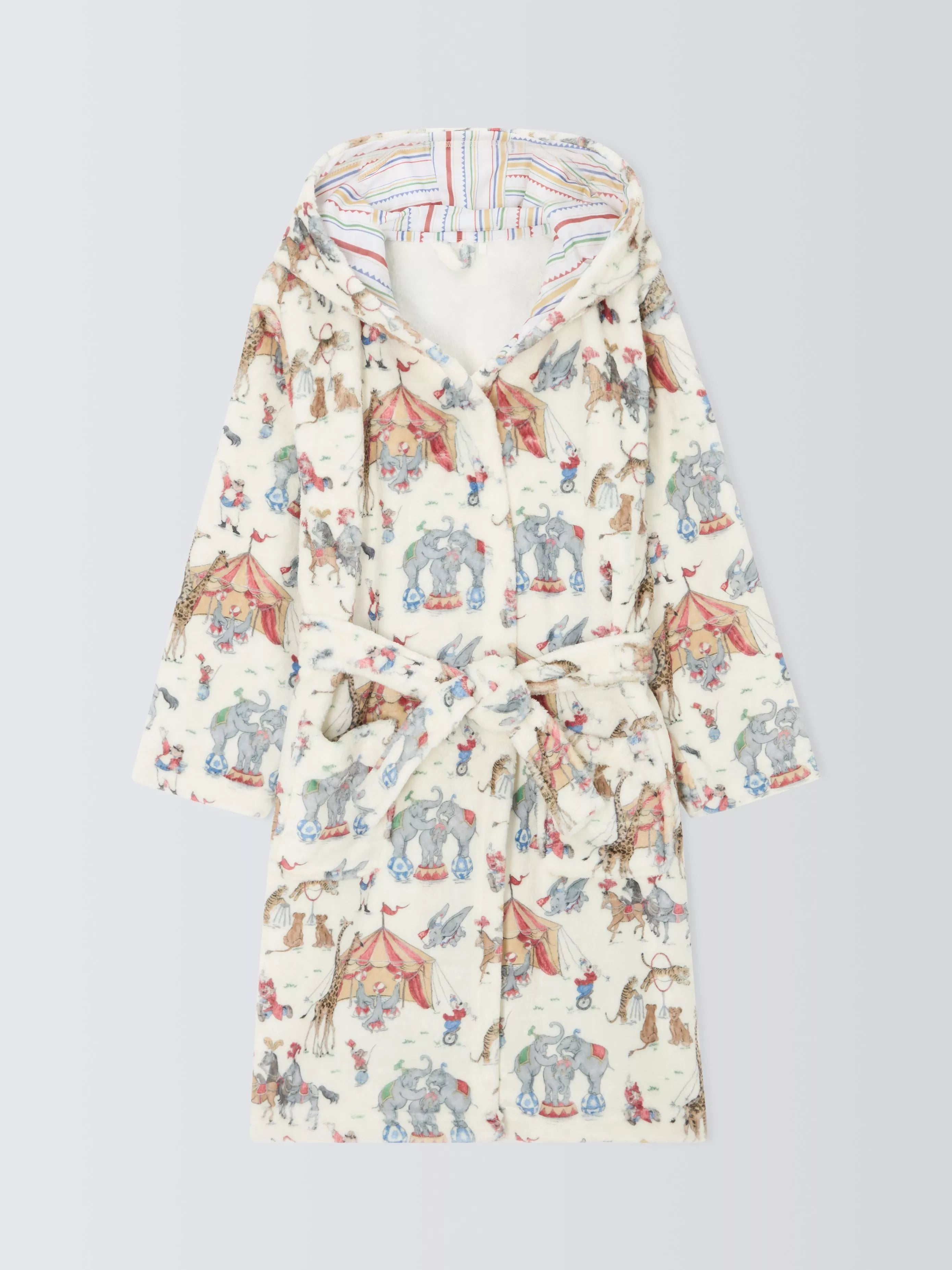 Keeping them cosy, this super soft fleece robe showcases an all-over design with a printed hood lining.