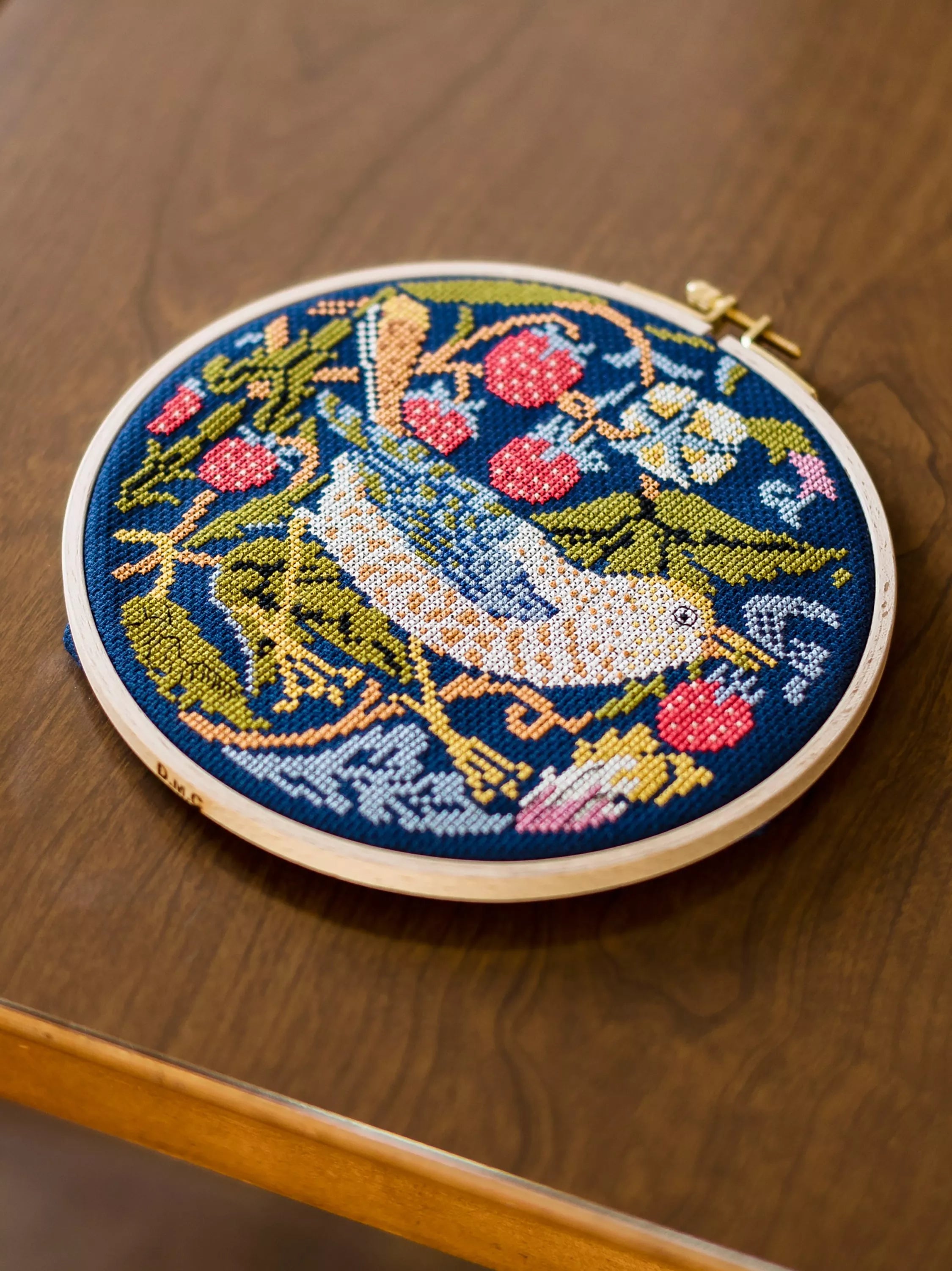 Suitable for those with advanced skills, this kit contains everything you'll need to recreate the William Morris Strawberry Thief design including fabric, threads, needle, a seven inch hoop and step-by-step instructions to guide you through the process.