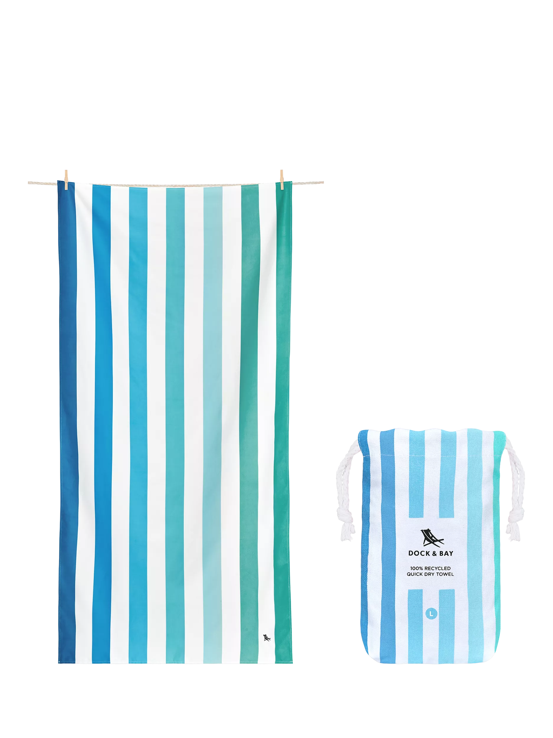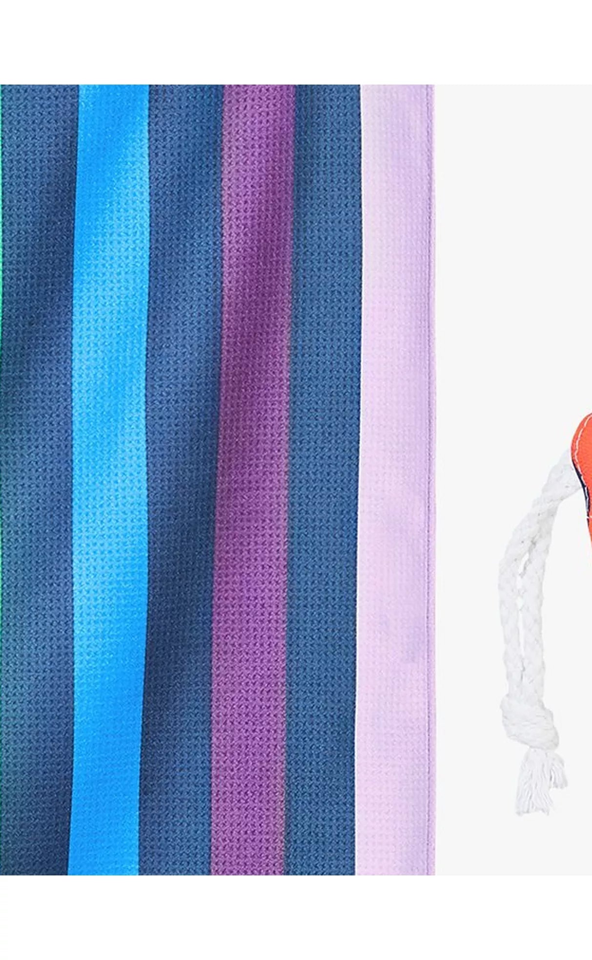 Made from 100% recycled post-consumer plastic it ticks all the boxes for what you'd look for in a beach towel as it's compact, lightweight, super-absorbent but also quick-drying. It's also made in such a way that sand won't stick to it, so a quick shake out and all the sand will be gone. An elastic hook makes it easy to hang out to dry or on the back of a door if you're using it as a bath towel and as it comes in a large pouch (100% cotton, not recycled) with a drawstring fastening it's great for travel.