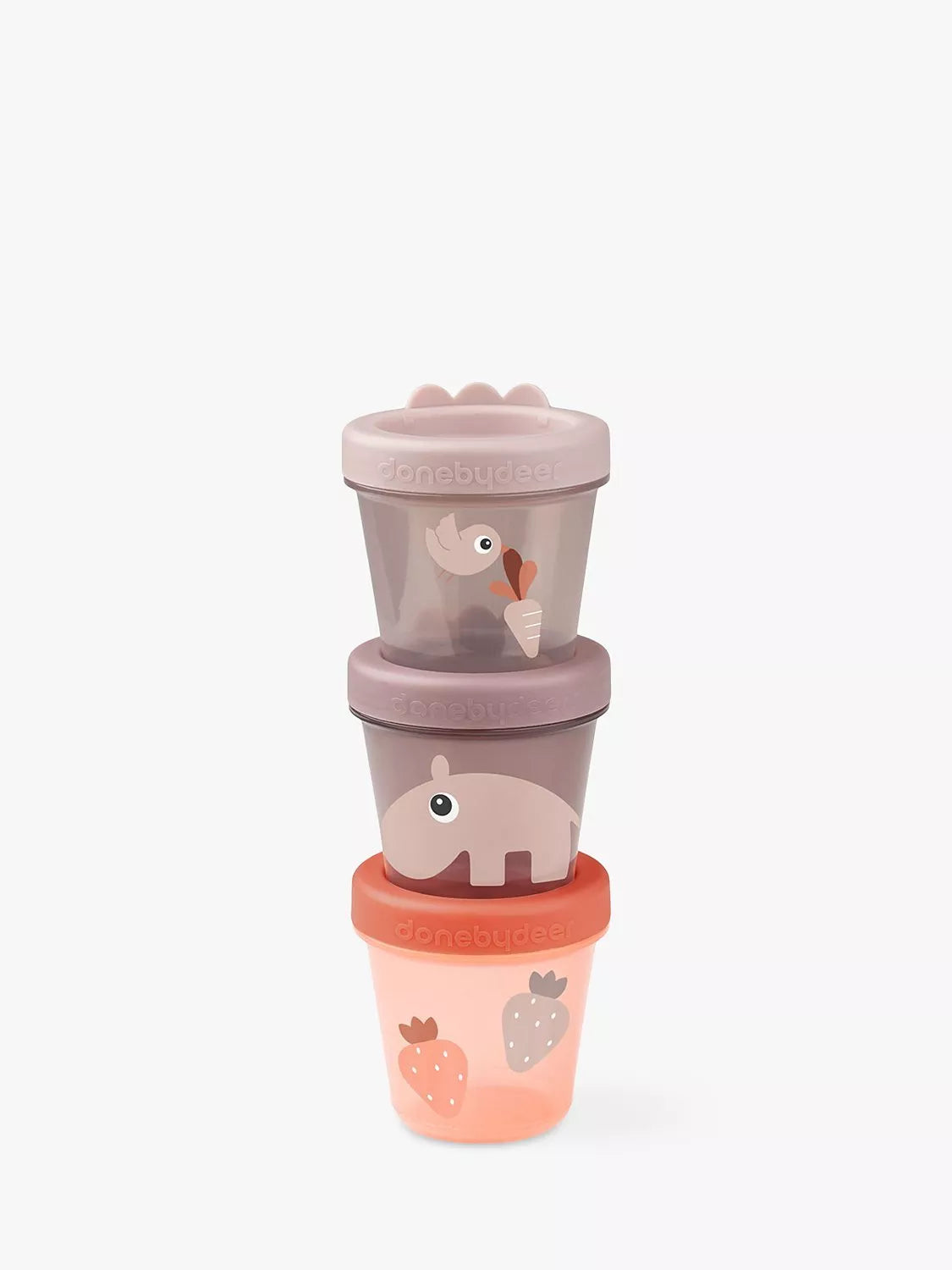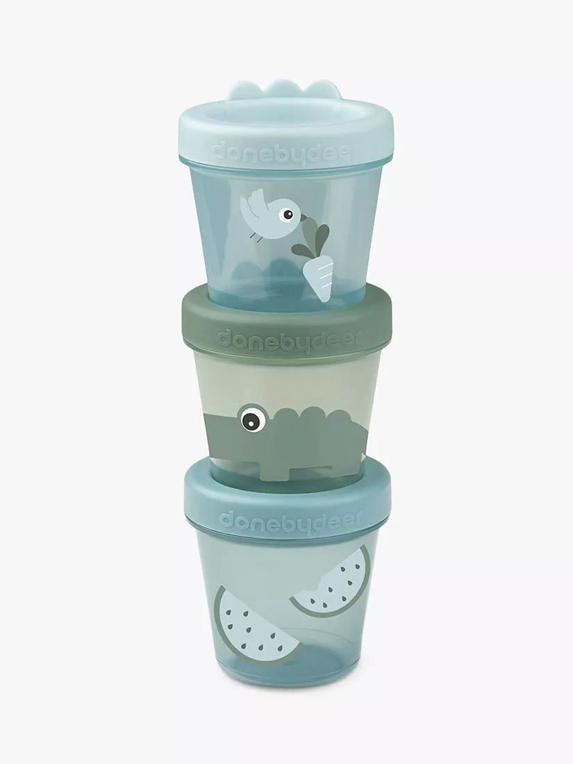 They are perfect for bringing snacks to preschool and beyond or for saving homemade porridge in the freezer. The translucent containers are stackable and easy to store and the screw-on lid makes them leakproof and airtight. They have cute details with Croco lumps on the lid and prints of Deer friends and their favourite snacks. Let your little one enjoy a small meal with our Deer friends.
