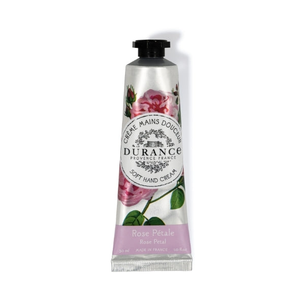Introducing Durance's Rose Petal Soft Hand Cream—a 30ml luxurious hand cream that envelops your skin in a veil of softness, leaving it delicately scented with the fresh, fruity floral notes of the Centifolia Rose. Enriched with sweet almond oil, this cream provides deep nourishment, ensuring your hands remain soft and hydrated throughout the day. Fragrance Notes: Top Notes: Blackcurrant, tea Heart Notes: Rose, peony, lotus flower Base Notes: Ambroxan, cashmere wood, musk The Rose Petal fragrance captures a magnificent bouquet of Durance roses, with the queen of flowers highlighted by fruity notes of blackcurrant and tea. The base is more voluptuous, featuring woody and musky notes. Key Features: Intense Hydration: Enriched with sweet almond oil for deep nourishment. Natural Ingredients: Formulated with over 95% natural ingredients. Portable Design: Compact 30ml size ideal for carrying in your handbag. Crafted in Provence: Meticulously produced in Durance's workshops in Grignan, Drôme Provençale. Artisanal Fragrance: Developed in collaboration with master perfumers from Grasse, the renowned perfume capital. Usage: Apply a small amount to clean, dry hands and massage gently until fully absorbed. Reapply as needed throughout the day to maintain soft, hydrated skin. Elevate your hand care routine with the timeless elegance of Rose Petal, capturing the essence of a blooming rose garden in every application.