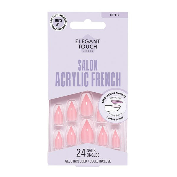 looking to elevate your classic french tip then try our glossy coffin acrylic french no6 this pointed french tip meets in the middle of the nail to create an elongated classy shape so go ahead and mix up your traditional french
