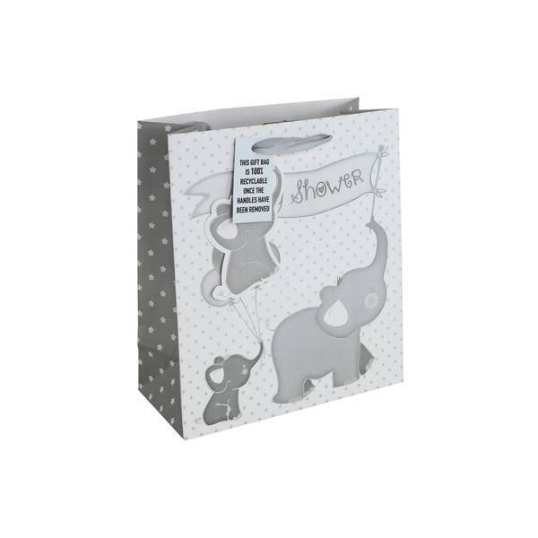 Material: Kraft. Height: 33cm. Width: 26cm. Length: 14cm. Design: Elephant, Star, Text. Carry Handle, Swing Tag. Compartments: 1 Main Compartment.