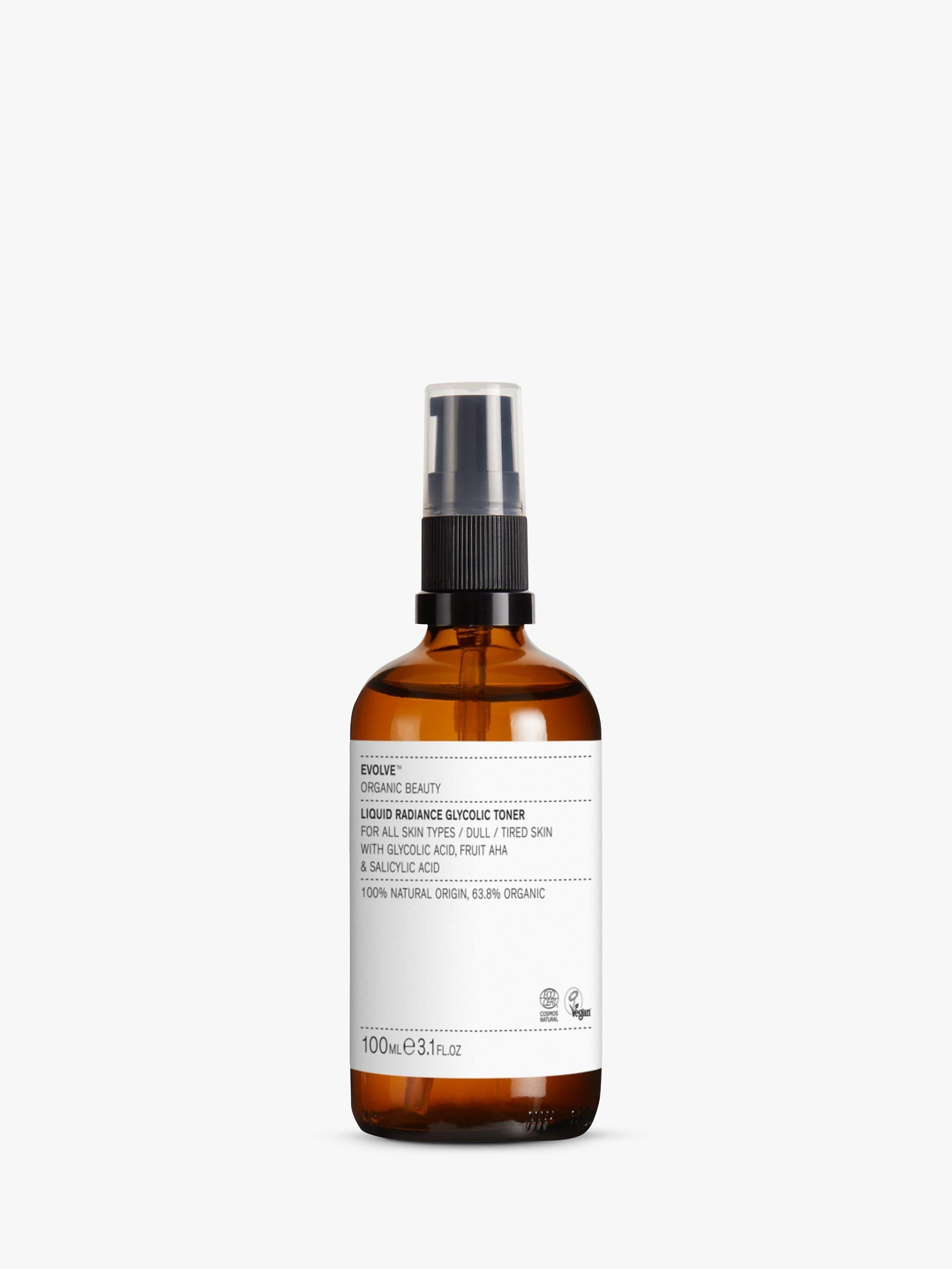 Evolve Organic Beauty Liquid Radiance Glycolic Toner 100Ml offers a 100% natural solution for skin renewal within your general skincare category. This exfoliating liquid uses fruit AHAs and BHA to instantly reveal smoother and brighter skin texture upon application. It is essential for daily luminosity enhancement.