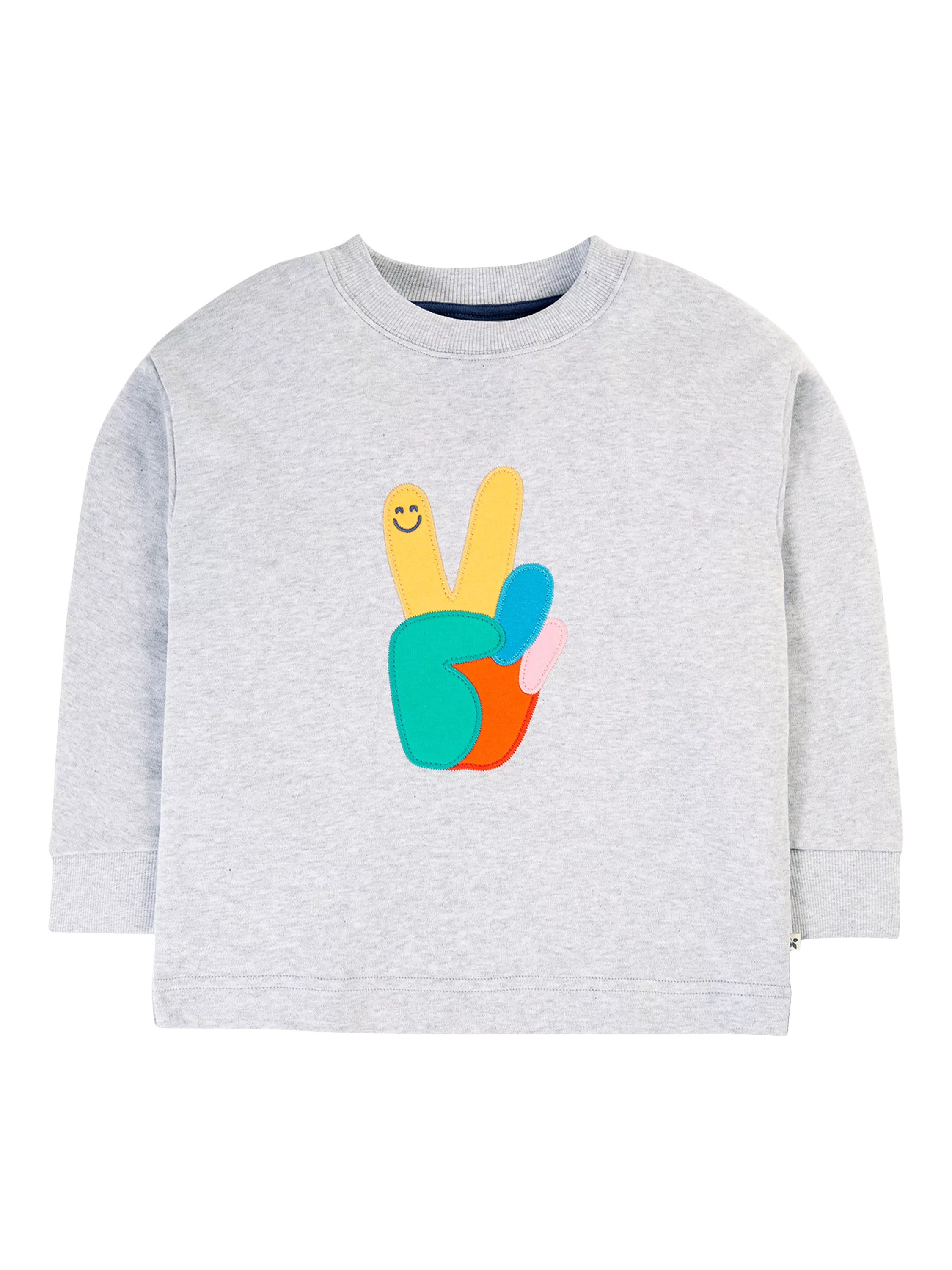 This long-sleeve top is designed with drop shoulders, a stretchy rib neck and cuffs and features a peace sign applique on the front. Made with organic cotton and also Global Organic Textile Standard (GOTS) certified.