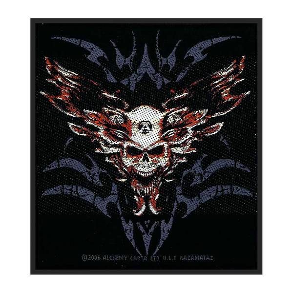 Product Information material polyester fabric woven length 100mm width 100mm design printed skull wings overlocked edge sewon