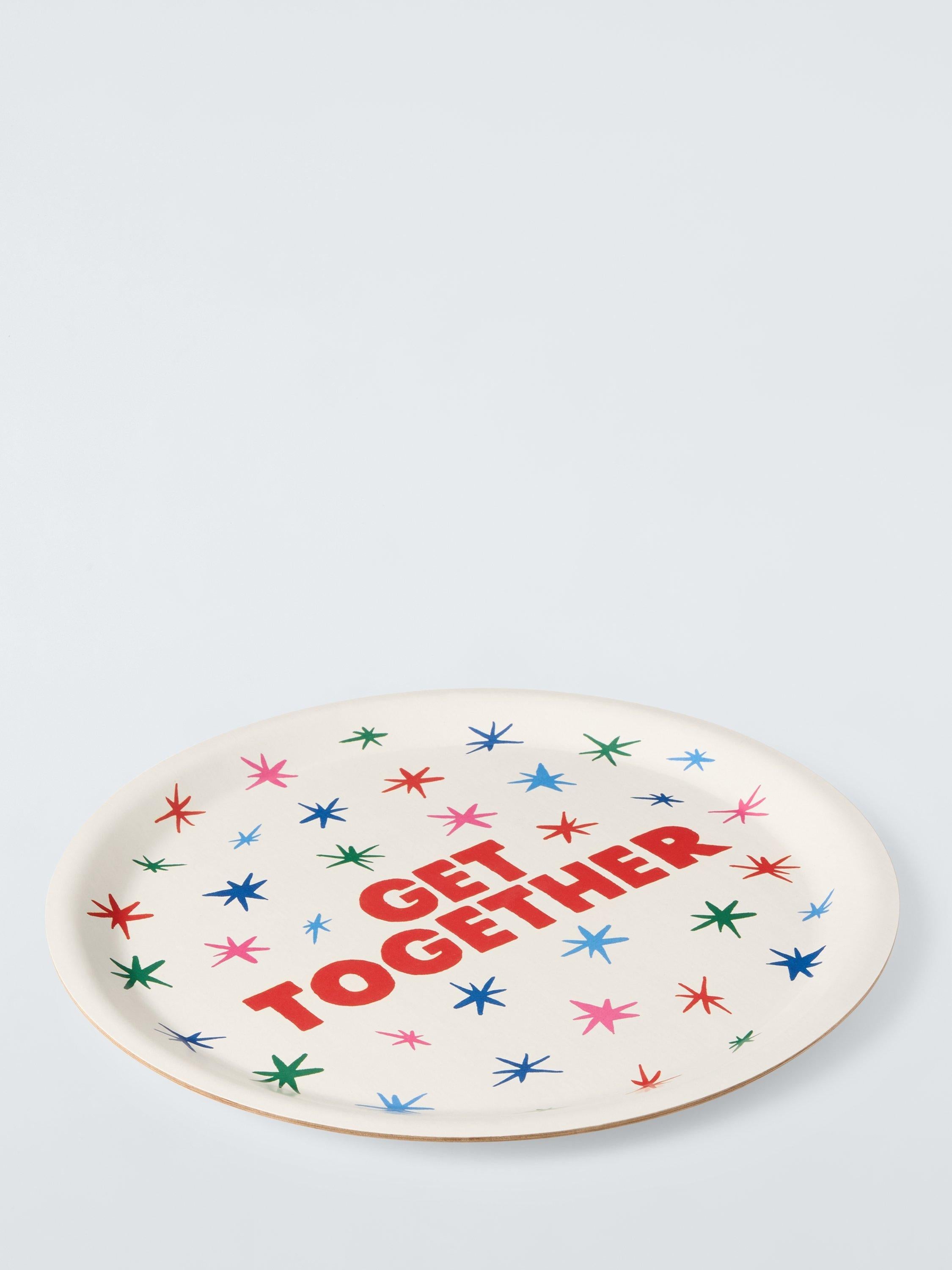 This John Lewis Round Tray, measuring 37cm, is designed specifically for festive occasions and social gatherings. Featuring a vibrant star motif and the phrase 'Get together', this piece elevates your home entertaining. Crafted from lightweight birch wood, it is excellent for effortless serving needs across your home.