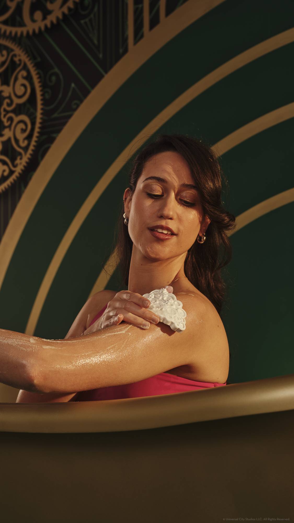 Lather up relaxing suds that'll cleanse the skin, then rinse.