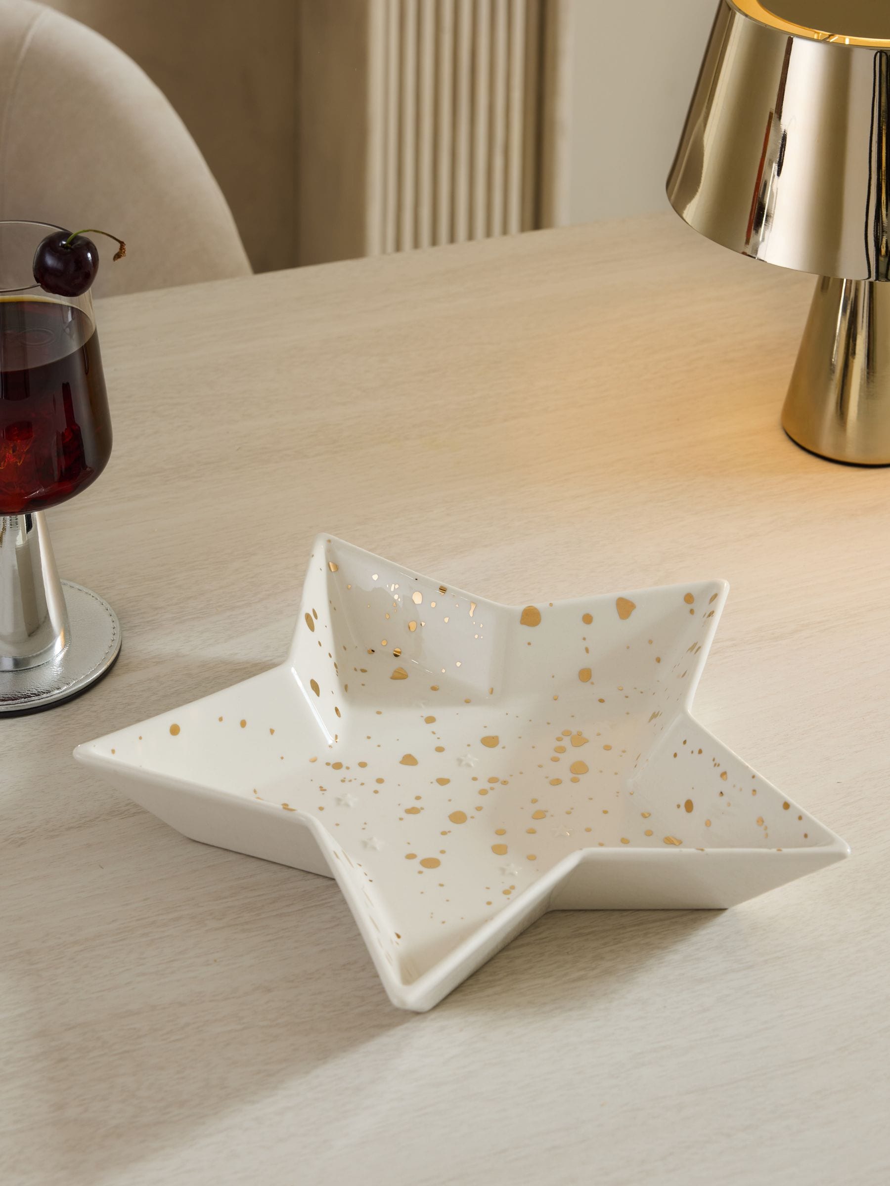 The perfect serving bowl for the festive season, introducing our Star Shaped serving bowl. This piece is finished in a glossy finish with a subtle gold tone speckle detail. Made from durable stoneware, this piece is both practical and long lasting.