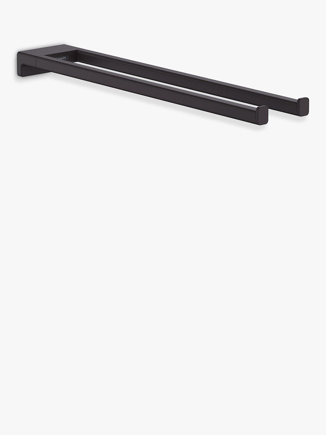 Read MoreA stylish AddStoris wall-mounted twin-handle bath towel holder, from Hansgrohe, adding visual and functional flair to a bathroom. With this modern and minimalist design, keep two towels within easy reach and they will dry more quickly when hung up on the rail.