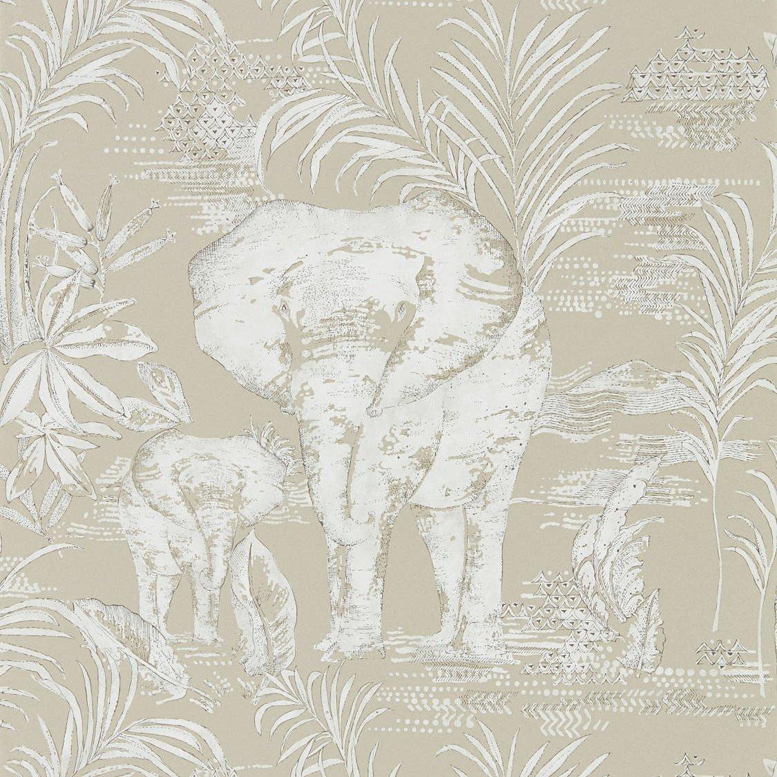 Harlequin Kinabalu Wallpaper offers a striking contemporary toile design for elegant interior decoration. This detailed pattern showcases hidden elephants amongst lush foliage settings. It provides a sophisticated, high-quality wall covering choice for all rooms.