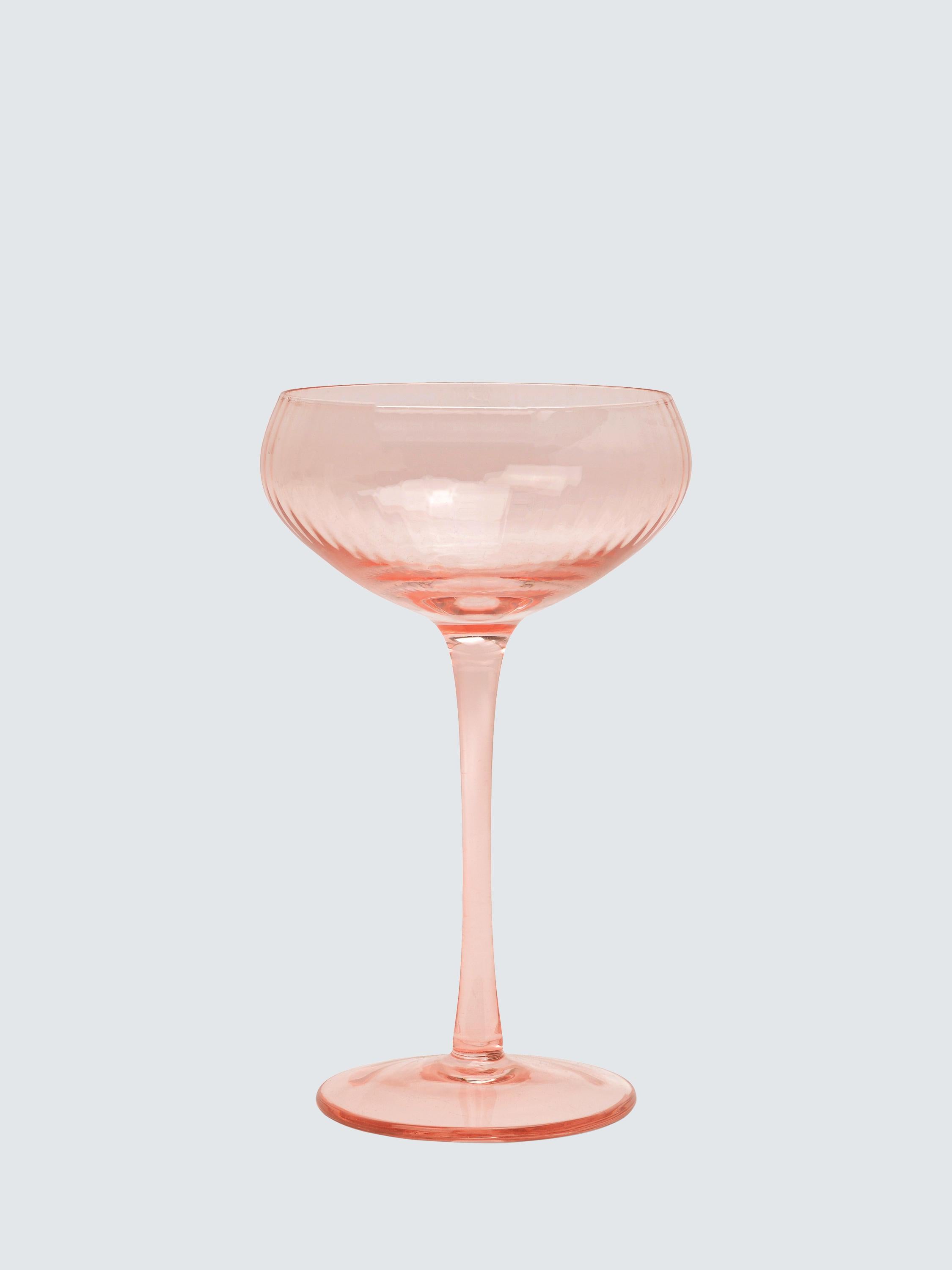 Heres How presents the elegant Lou Coupe Glass Set of 2 in a striking Blush finish. These glasses redefine cocktail serving with sophisticated design and practical durability. They are perfect for elevating any special occasion or sophisticated evening drink enjoyment.