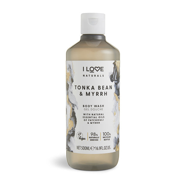 Cleanse and nourish your skin with the I LOVE Naturals Body Wash.Inspired by nature, it has been expertly formulated using plantbased cleansers and Pro Vitamin B5 to help moisturise the skin. This exquisitely fragranced body wash has been infused with a complex blend of myrrh, cinnamon bark, and patchouli essential oils.The moisturising, luxurious lather gently removes impurities, without drying the skin, to leave it feeling refreshed, moisturised and elegantly scented.
