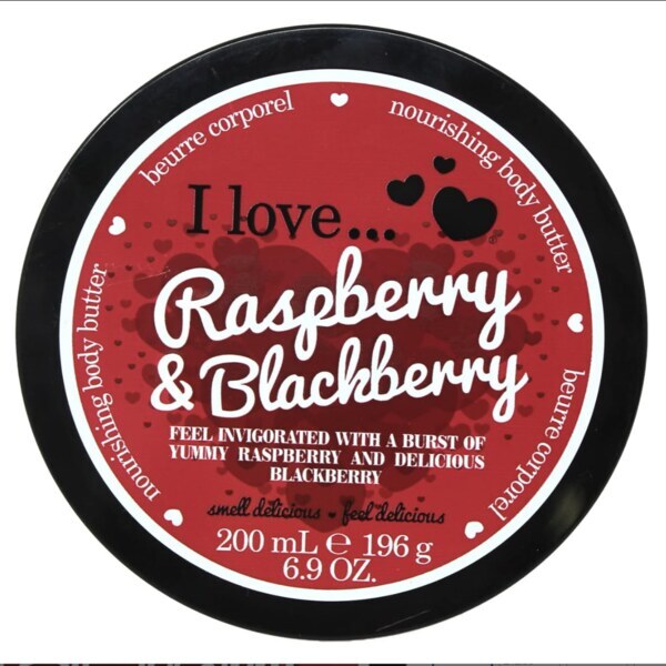 Enjoy a touch of indulgence with I LOVE’s range of rich body butters. Packed with the perfect blend of naturally nourishing Shea Butter & anti-oxidant rich Coconut Oil, they will leave your skin silky soft and beautifully hydrated. Made with 87% of naturally derived ingredients and containing natural fruit extracts these body butters will melt into your skin leaving it feeling moisturised and lightly scented. An everyday treat that will leave you feeling oh so soft from top to toe! Feel revitalised with the delicious scent of fresh berries in Raspberry & Blackberry. It’s the fruity fix you will love. I Love’s pampering treats harness the power of berries to leave your skin deliciously clean & lightly scented.