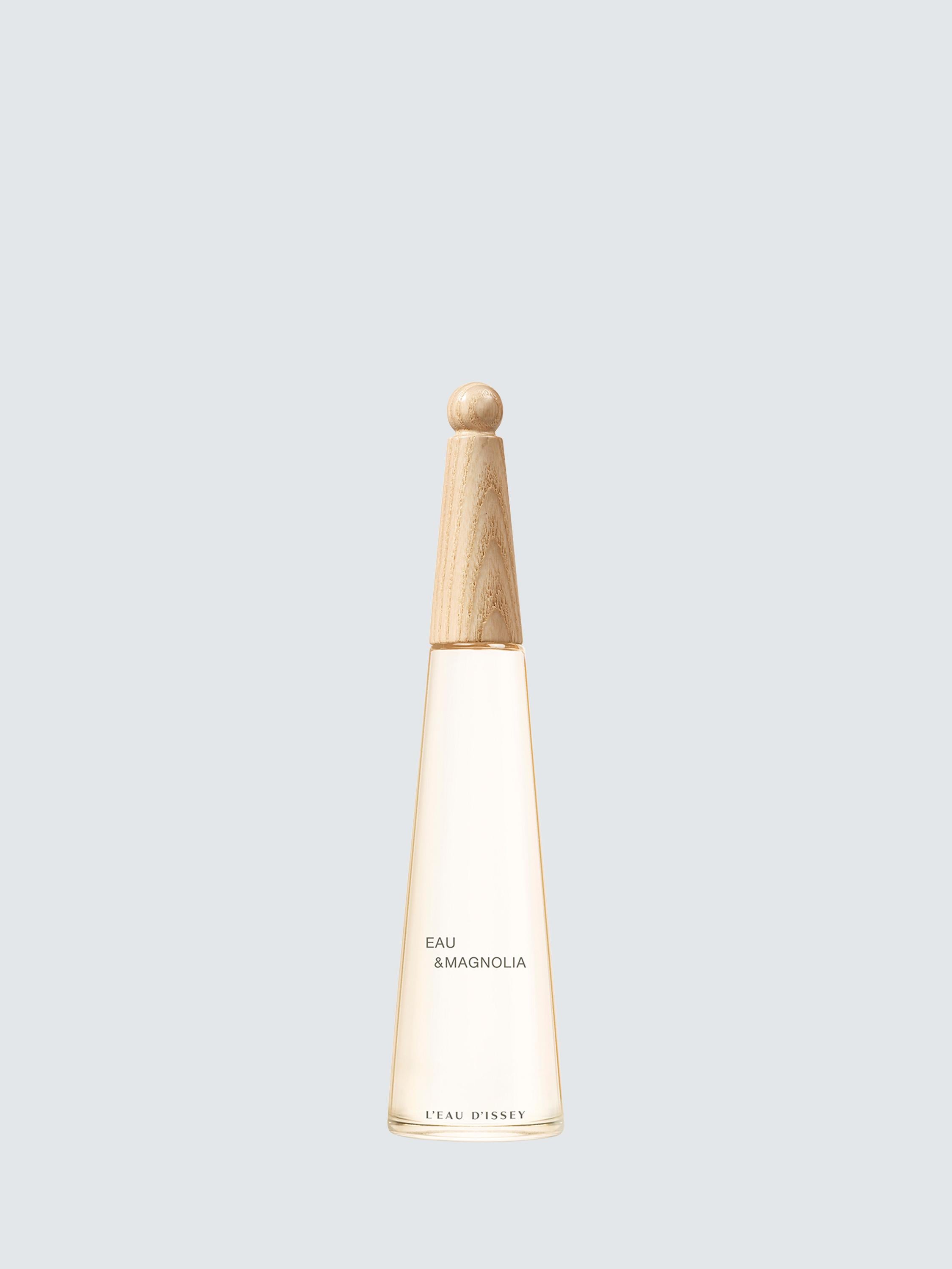 Issey Miyake wanted to present L'Eau d'Issey in a bottle that could transcend the boundaries of time and fashion, and L’Eau d’Issey Eau & Magnolia pays tribute to this bottle in its own unique way. A minimalist bottle that gets back to the essential, adorned with a touch of beige and topped with a wooden cap echoing the raw, untouched nature that has inspired it. The bottle of L’Eau d’Issey Eau & Magnolia is made of 20% recycled PCR glass. Each wooden cap, made of ash, is unique in terms of its colour and its veins. The fragrance itself is vegan and made of 85% of natural origin ingredients.