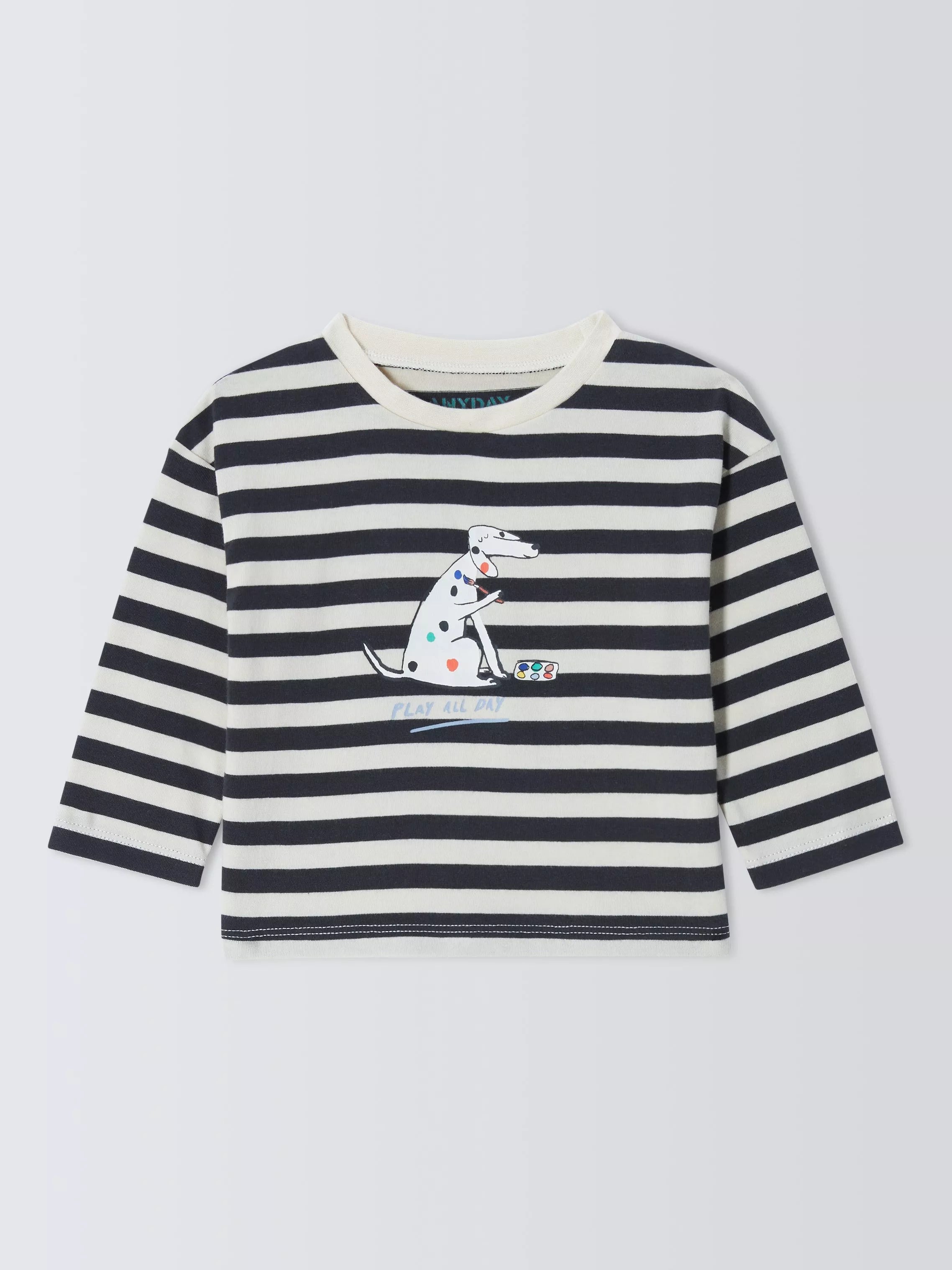 Made from 100% cotton with yarn-dyed stripes, this long-sleeve top is a comfy, breathable choice that will retain its colour wash after wash. A central 'Play All Day' placement completes the look.